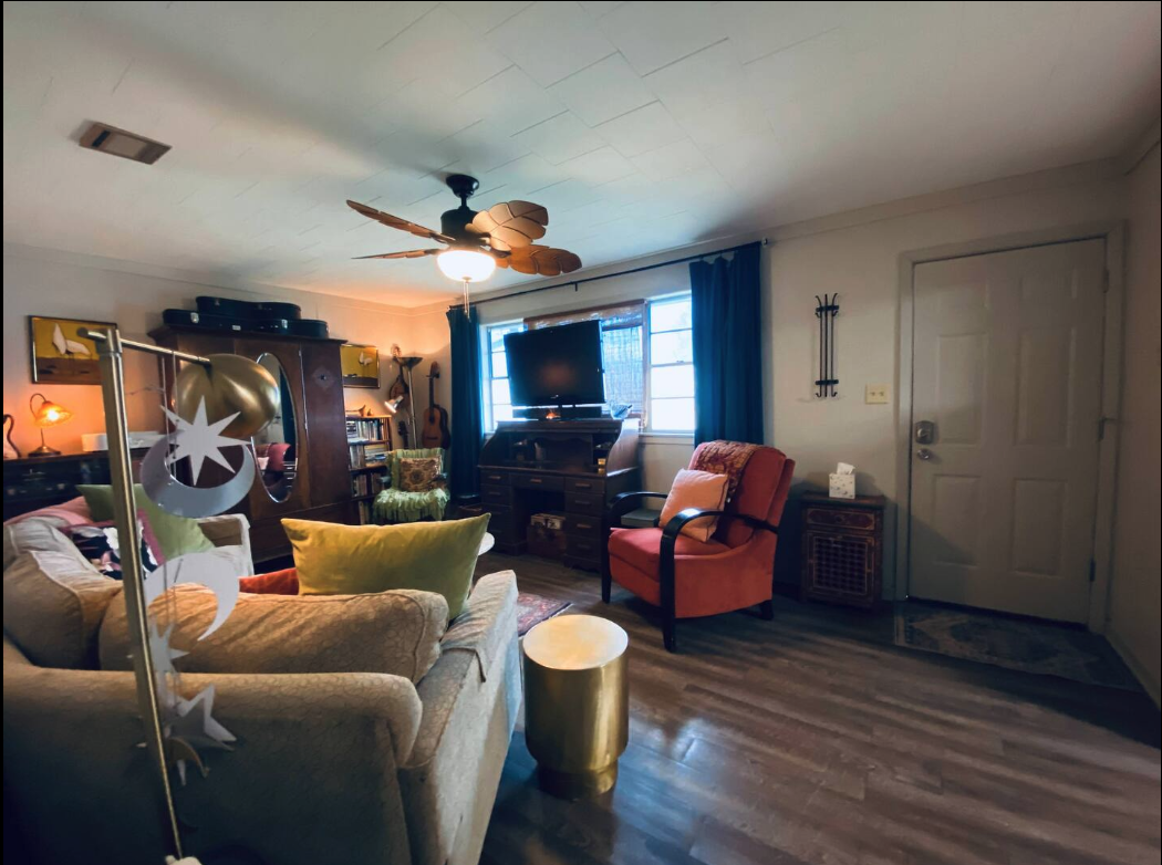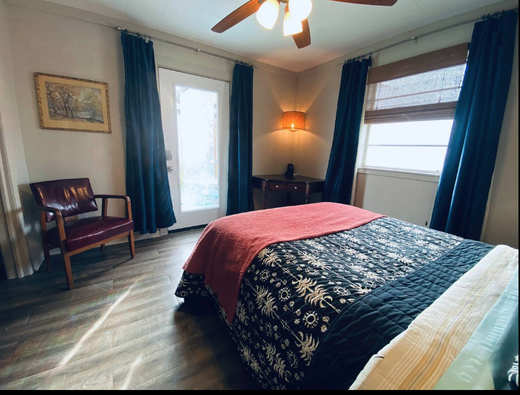 Our initial impression was one of disappointment as the house was in a semi-industrial area on a busy two-lane road. But once inside the noise diminished and we began to appreciate the unique and somewhat whimsical decorating theme that was presented, with a mixture of antiques, multiple musical instruments, an old record player and a big comfortable couch and chair. The bedroom was tucked at the back of the house further isolating it from the road and thus, we came to enjoy our stay.