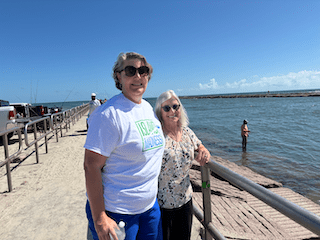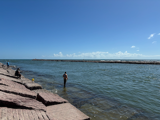 I picked the girls up when they were finished and the three of us drove to Mustang Island State Park at Padre Island to walk the jetty and the beach, taking advantage of a nice day near the water. Finished we drove back towards Corpus Christi, stopping just short of the causeway to the mainland to have lunch at Snoopy’s Pier and where we would catch up with Lee. Joanna and I split an order of fish tacos, and I disposed of a pint of Yuengling in short order.