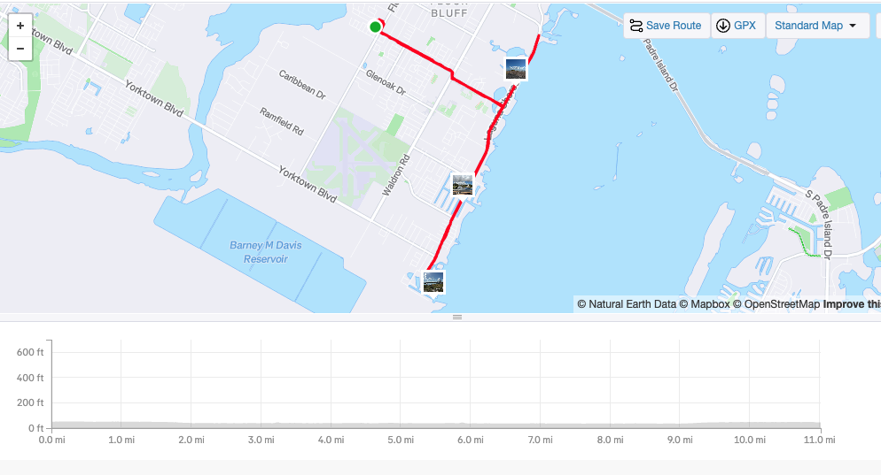 The next morning Joanna and I set out for a short but satisfying 11-mile ride from the house, riding down to Laguna Shores Drive, turning right and heading to its termination at the Laguna Madre Boat Ramp, then turning around and retracing our route and continuing on until just short of South Padre Island Drive before reversing course and returning to the house.