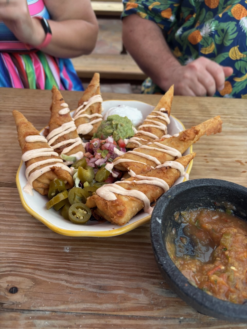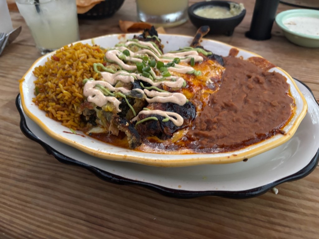 We all split an order of the Dynamite Sticks (Crawfish and shrimp flautas with guacamole & chipotle sour cream) and then Joanna and I split the Dueling Chili Rellenos (beef picadillo & chicken Tinga stuffed poblano peppers served “Christmas style” with ancho and tomatillo sauces). This ended up being much more food than we could possibly finish but we gave it a good effort and at the end felt we had acquitted ourselves admirably. It was a fitting way to finish up or short stay with Stephanie and Lee as a long drive beckoned us the next morning and thus, we’d be leaving early. But knowing us we’ll be back here in the future for more fun with friends.