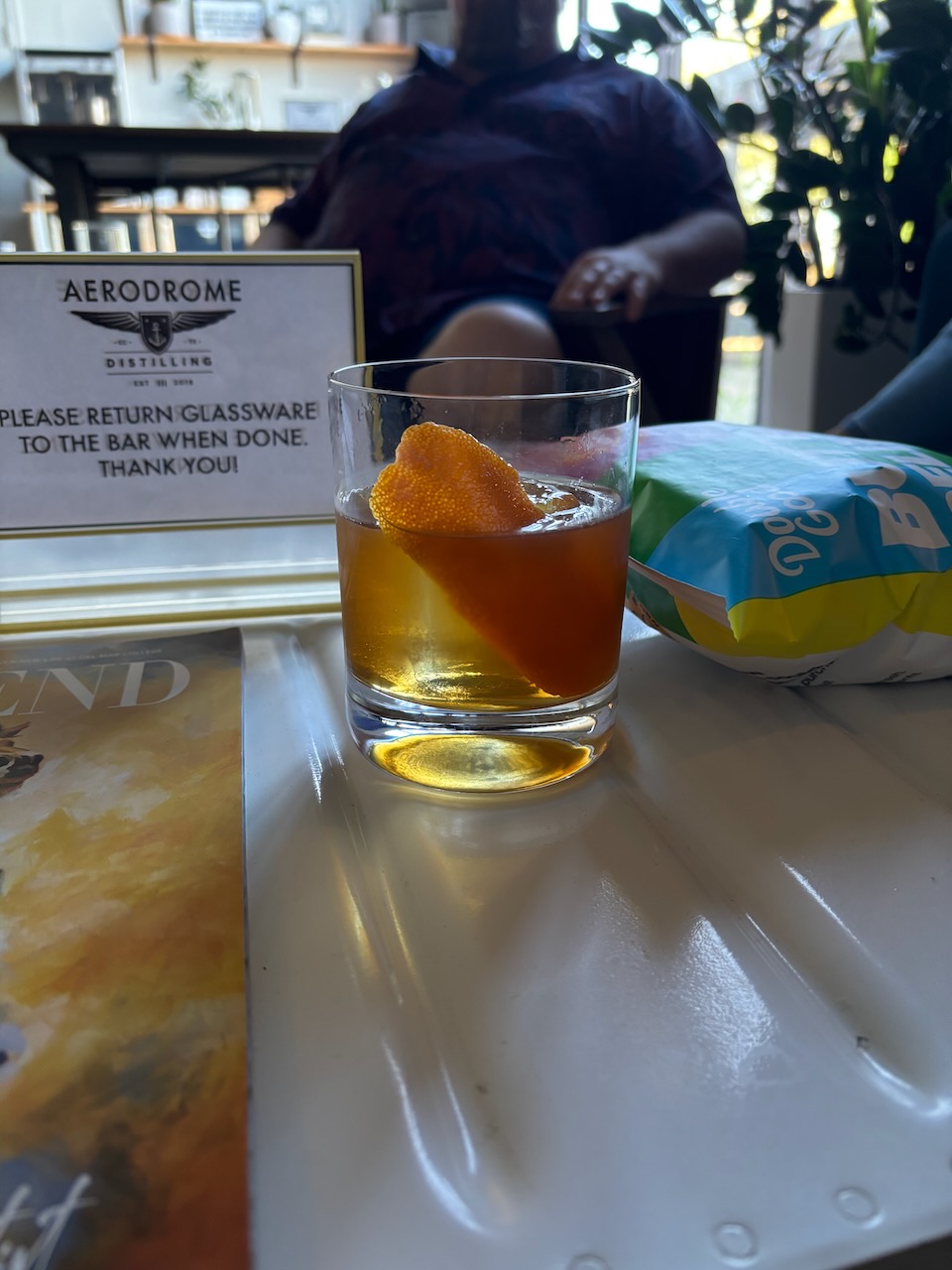 With the afternoon in front of us we set out to do what we do best when in town, that is find some interesting place to consume an adult beverage and so we returned for the second time to Aerodrome Distilling for a round of delicious cocktails. Joanna opted for a refreshing Gin and Tonic while I went for my signature drink, the Old Fashioned. The bartender spends quality time preparing each concoction and it shows in the final product, meaning it’s hard to stop at just one, but that is what we did as we finished the day at the house watching TV and getting caught up on life in general.