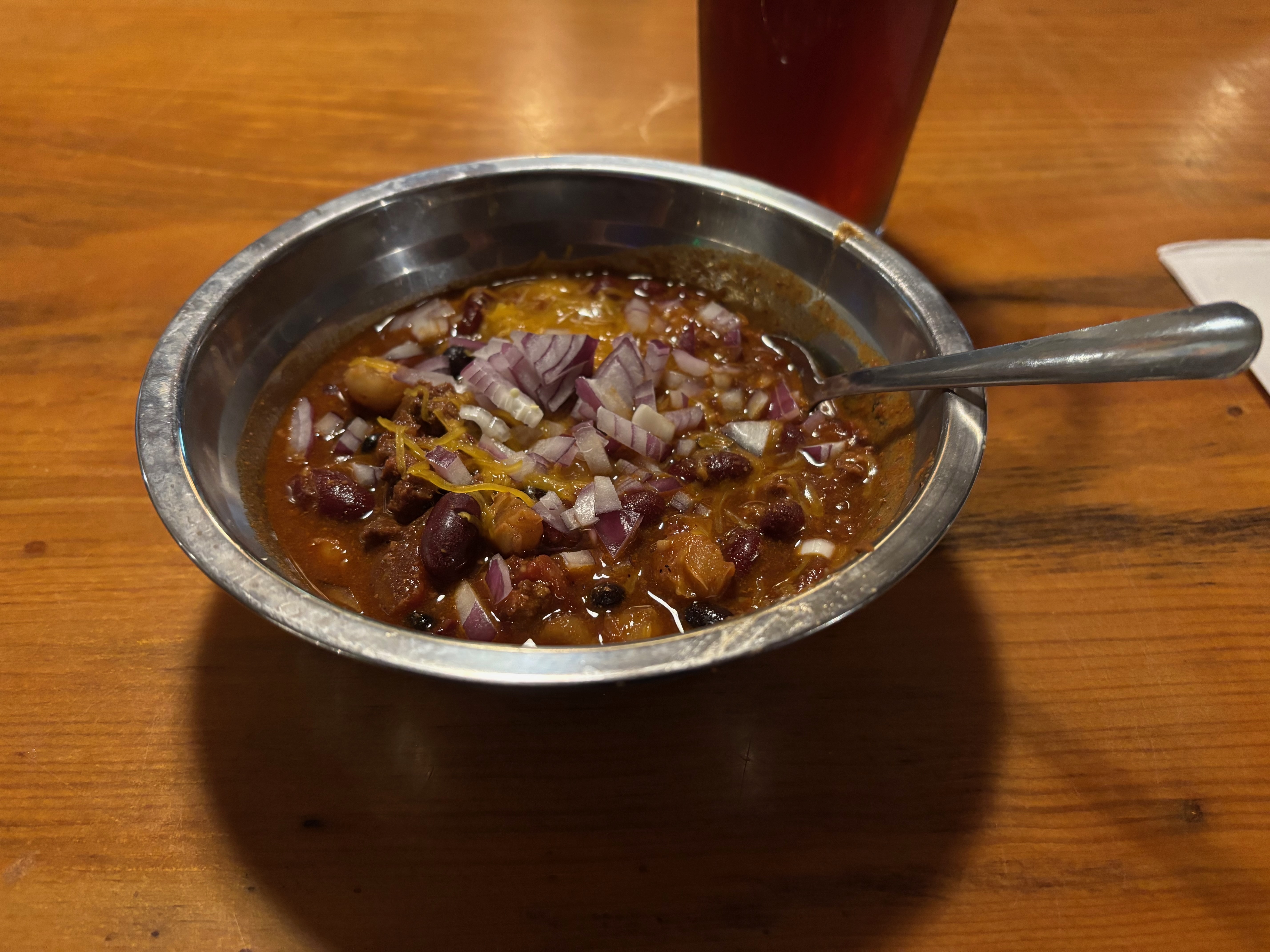 We returned later for dinner where I enjoyed a small dinner salad and delicious bowl of chili along with a pint of the Sequoia Red Amber Ale, a perfect way to complete my meal. We returned to Kim and Marty’s room for another round or so and then off to bed looking forward to the drive to Yosemite.