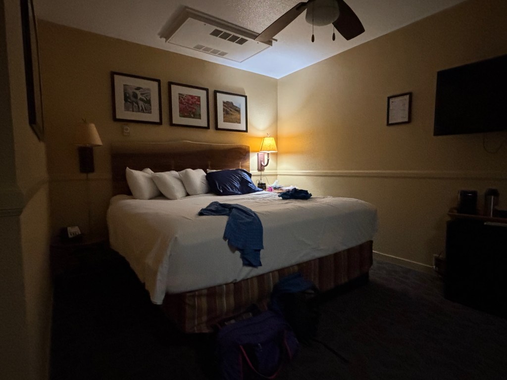 Back on the road the drive went smoothly as I recalled the countless number of times (how many? Thirty or more?) that I’ve traversed this road into this valley I love so much and has meant so much to me throughout my life. We arrived at the Lodge and checked in, needing to wait awhile as our rooms weren’t ready yet. Which would be a blessing in disguise as the one I was assigned to, while on the ground floor with easy access to the parking lot, was likely the smallest in the property and piling more on top, was located under a stairwell and adjacent to a busy sidewalk.