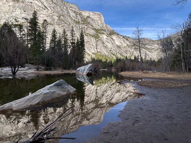 In what would end up being a three-mile round trip, we hit Mirror Lak, which is a small, seasonal lake located on Tenaya Creek. Situated in Tenaya Canyon directly between North Dome and Half Dome, it is the last remnant of a large glacial lake that once filled most of Yosemite Valley at the end of the last Ice Age and is close to disappearing due to sediment accumulation.