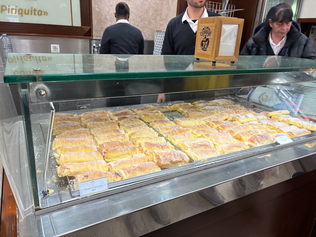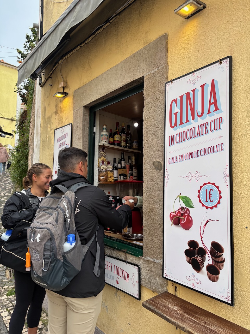 Finished with lunch, we began to work our way back downhill to the meeting spot for pickup but having some time to kill we joined the throngs of other tourist’s window shopping and sampling food from storefronts. A couple of folks stopped in at Casa Priquita to get a few of their famous Pillows, a delicate puff pastry with a filling of egg and almond cream for breakfast the next morning. While pastries were being purchased, others, including myself, hit up the Ginja in a Chocolate Cup Kiosk across the lane for their One Euro version of exactly that, a shot of that soul sucking cherry goodness wrapped in chocolate. I may have had two.