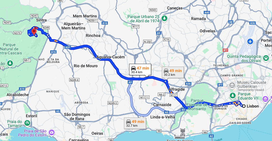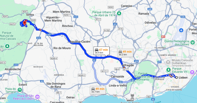 We were up and out early for our planned day trip to Sintra through Viator on their Sintra Highlights and Pena Palace Full-Day Tour. Joanna and I visited this area in 2014 but did not take a tour. Instead, we drove our car out to the coast and parked near the lighthouse there and then road our bikes up to Sintra before returning to the car and driving back to Lisbon.