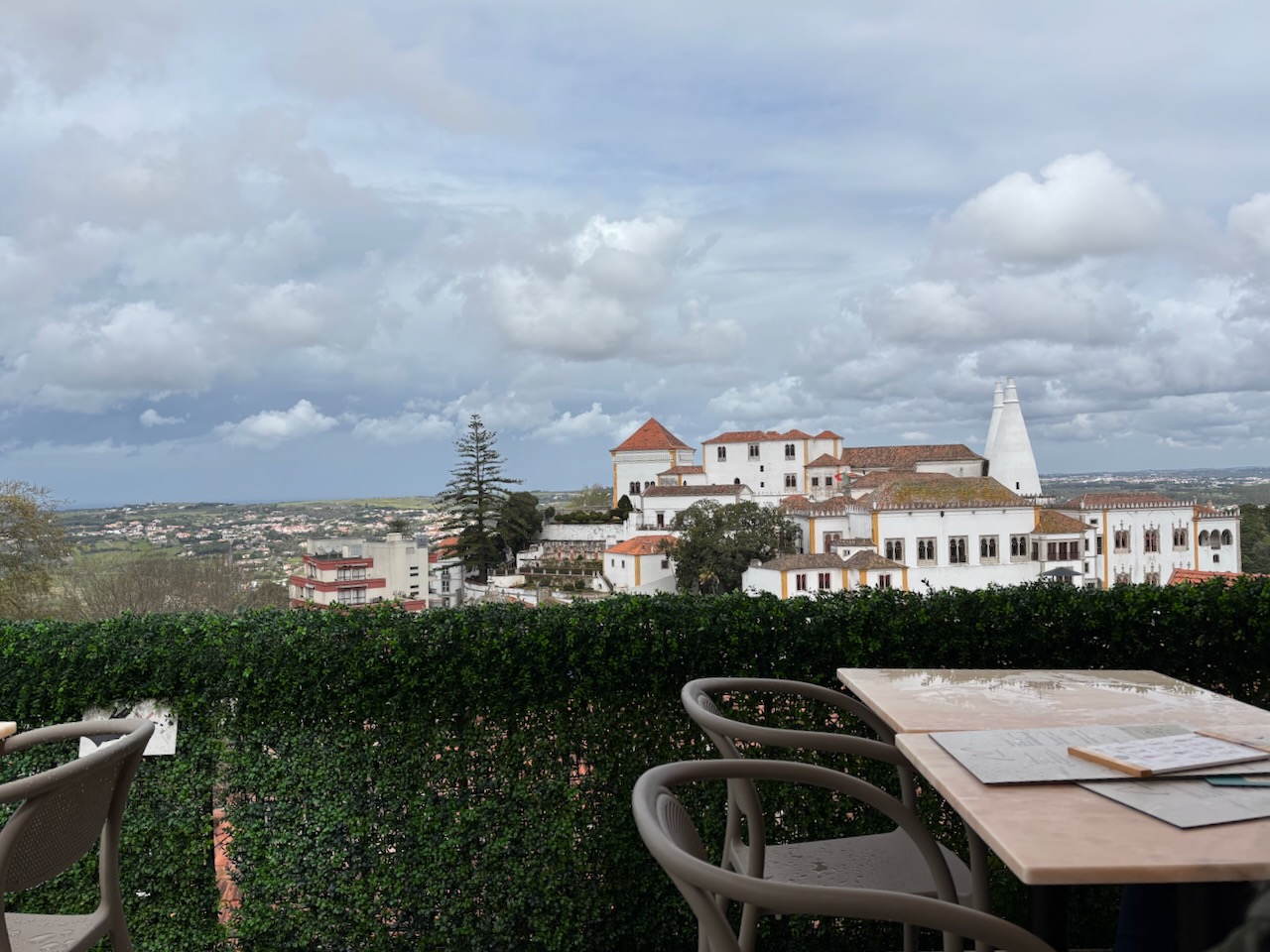 We all finished around the same time and as it was now past noon, eating became a priority and our helpful driver drove us to Sintra town, let us out at a convenient location and gave us the name of the restaurant, Tascantiga, to have our lunch. We climbed a steep hill to get to it and as there was going to be a wait for a table, Joanna, Marty and I stopped in at a place next door to sat on the patio with a view to enjoy a pre-lunch bottle of wine.