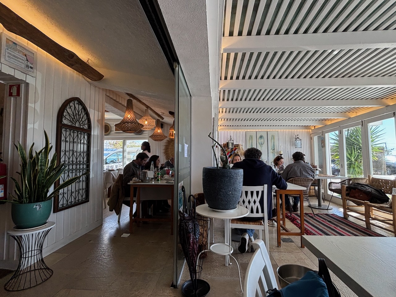 Marty and I dropped them off and drove back to Comporta to check out what the town looked like, observing enough restaurants and cafes to support a larger visiting population. We then headed back towards the stable and stopped in at Dona Bia, a crowded seafood restaurant where the Sunday afternoon crowd was chowing down on some great looking food. We were able to snag a table and ordered a bottle of Vinho Verde and a serving of French fries (we’d be having dinner later), timing our consumption so that we would finish at about the same time Kim and Joanna did.