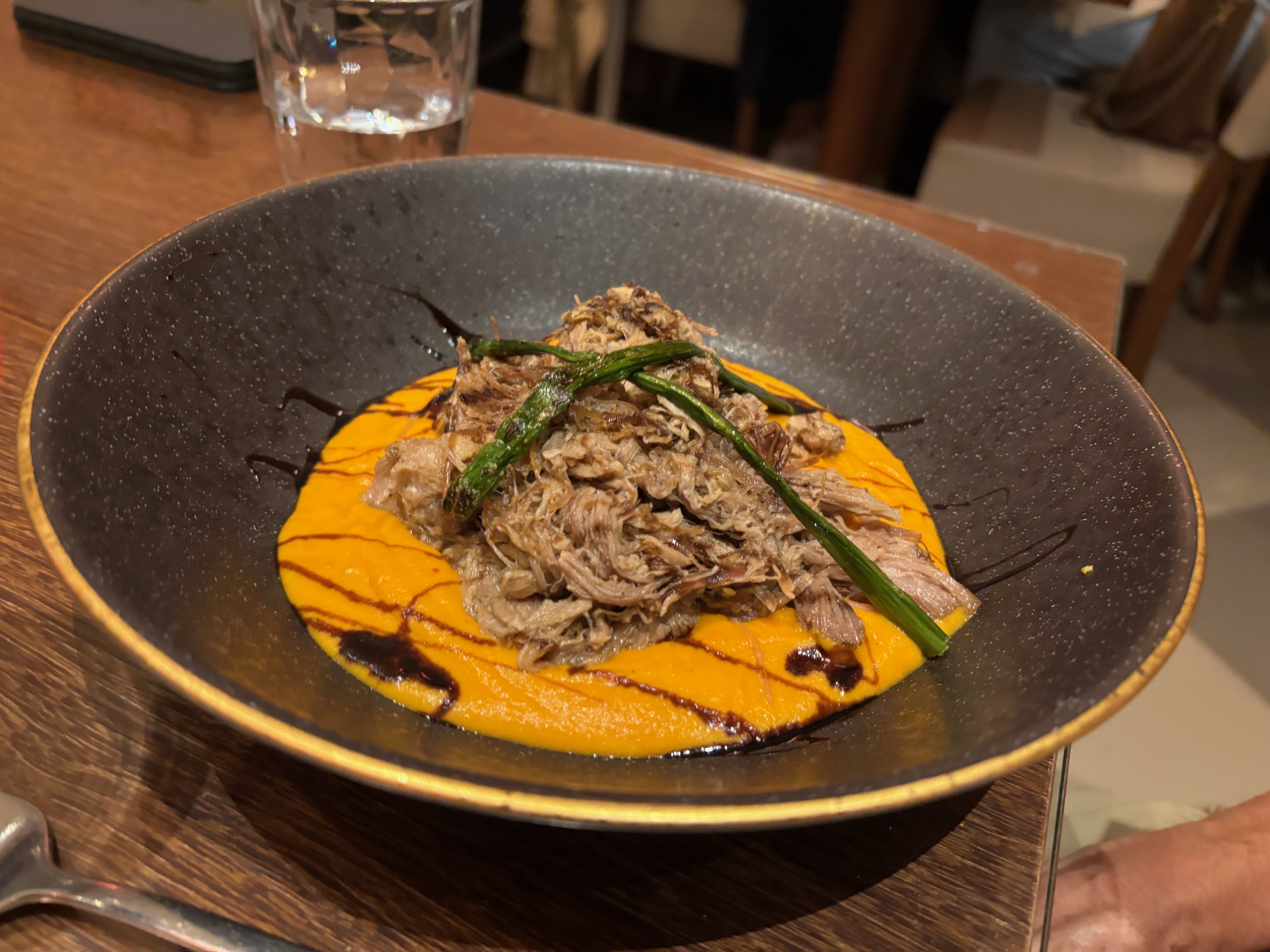 We all returned to the bungalow for an hour or two of preparation for our flight to Morocco the next day before taking the 15-minute walk to Gomes, Casa de Vinhos & Petiscos, our choice for dinner that night. This would turn out to be one of the best meals of the trip with great food, wine, and service. We started out with a Warm Salad comprised of bits of sliced ham mixed in with warm shredded cabbage.