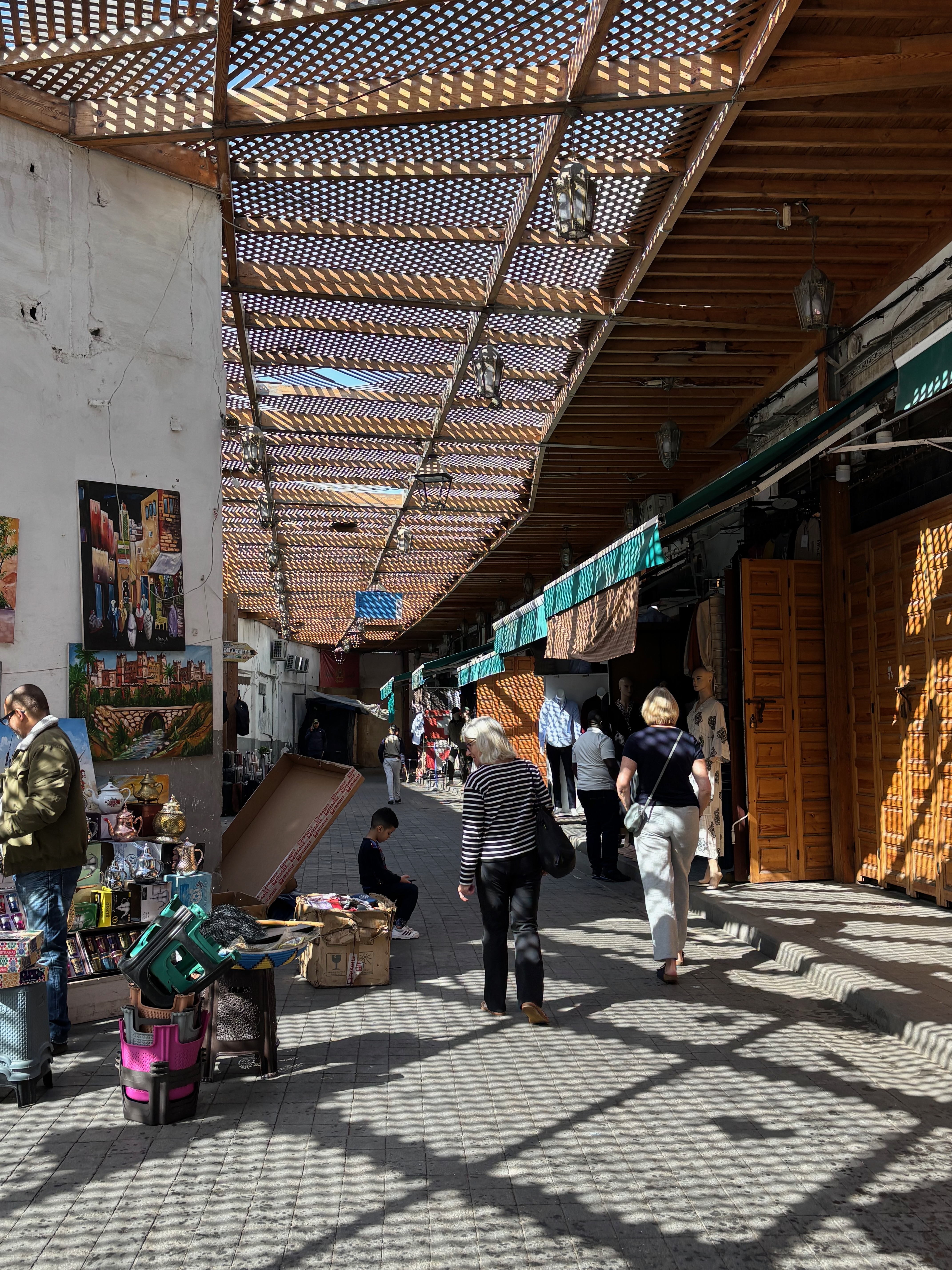 The next morning, we weren’t scheduled to meet with the tour until around 6:00 pm so we had full day to explore around the hotel. First, we enjoyed the substantial breakfast buffet and then set out on a walking tour that we had downloaded, and which would eventually lead us to the medina, where we would, not surprisingly, get lost. In Muslim cities, the Medina, or “old city,” serves as a historical and cultural center, often encompassing the heart of the urban area with its traditional architecture, bustling marketplaces (souks), and significant religious sites. It’s a place where the community’s history, social life, and religious practices are deeply intertwined.