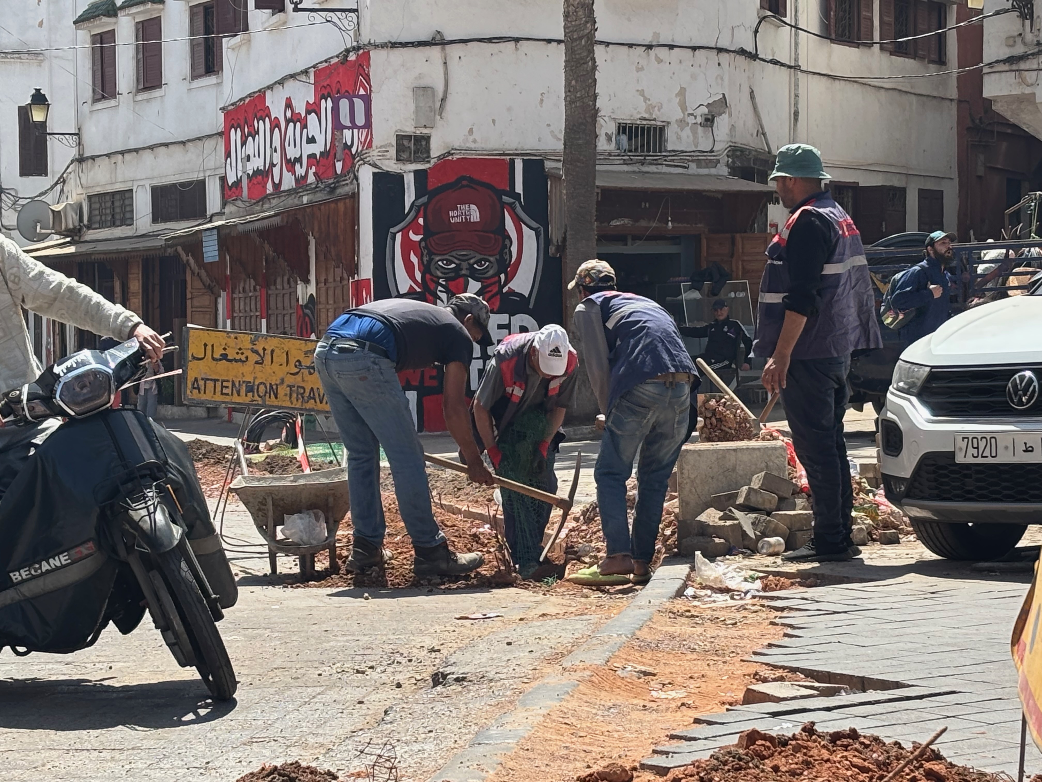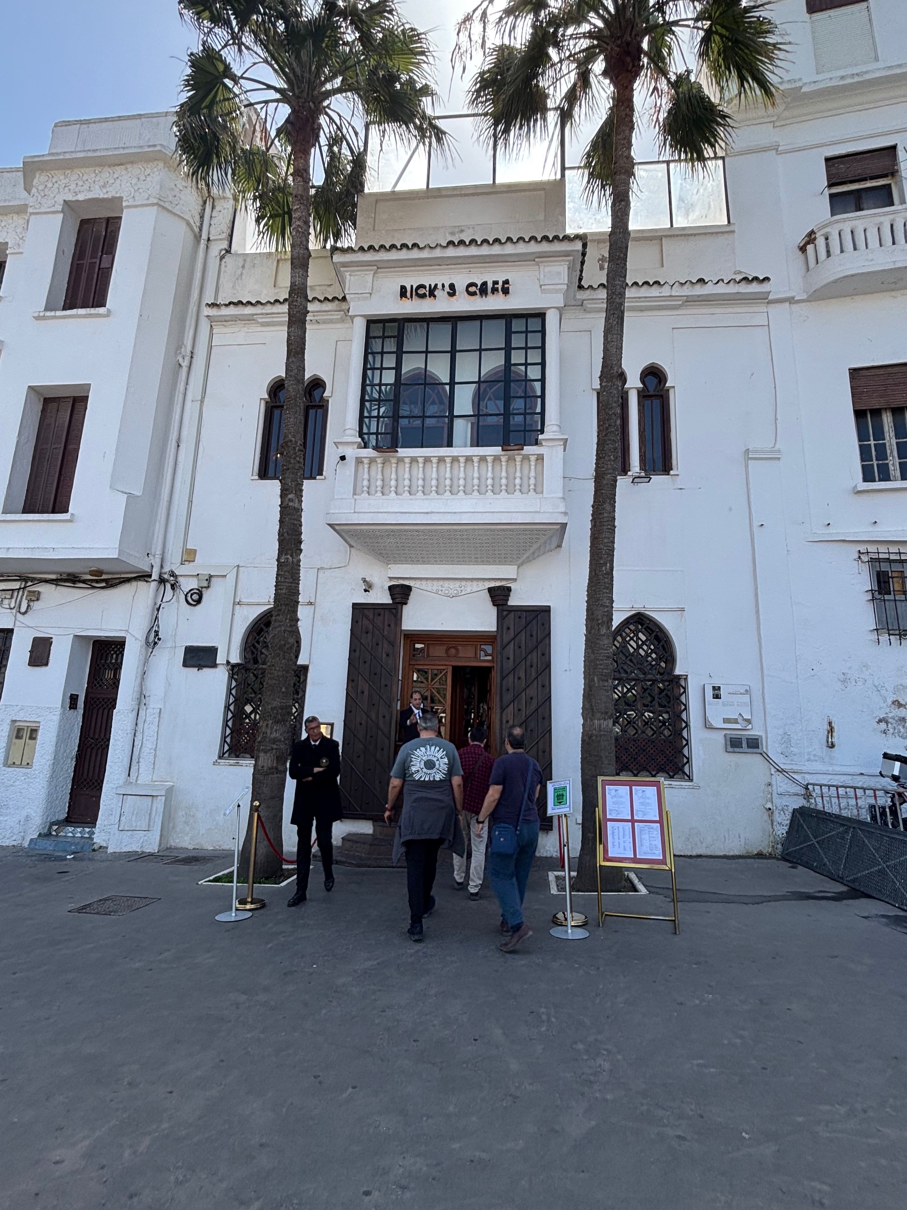 We decided to try to use Careem to get to the harbor for a drink but could not get a car to come after many attempts and in walking found ourselves outside the famous Rick’s Café, immortalized in WWII movie, Casablanca. While standing there, multiple tour buses pulled up and dropped off passengers for a photo moment before departing for other sights. In the end, Marty and Kim walked to the harbor while Joanna and I walked towards what we thought was the tower at the Medina entrance but turned out to be the main Mosque in town. On the way we encountered some men doing construction work on the street, and like that one time in Cairo, we witnessed them using tools to dig with while wearing flip-flops.