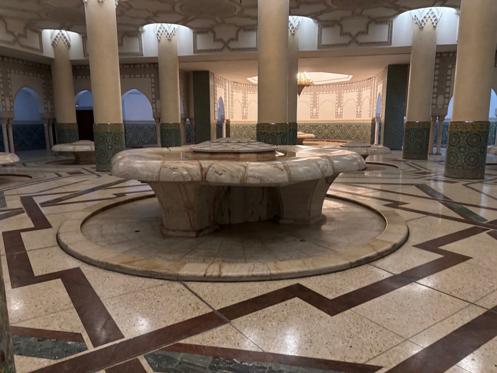 Like all great temples to a god, it is breathtaking and yet always leads me to question the amount of money that was spent to construct it. How much support could this amount of money be distributed to the poorer citizens of the country. Construction costs, estimated to be about 585 million euro, were an issue of debate in Morocco, a lower mid-income country. Much of the financing was by public subscription, supposedly voluntary, but according Hicham Morocco being somewhat of a police state, there wasn’t much voluntary about it. In addition to public donations and those from business establishments as well as other countries, western countries provided construction loans, which Morocco repaid.