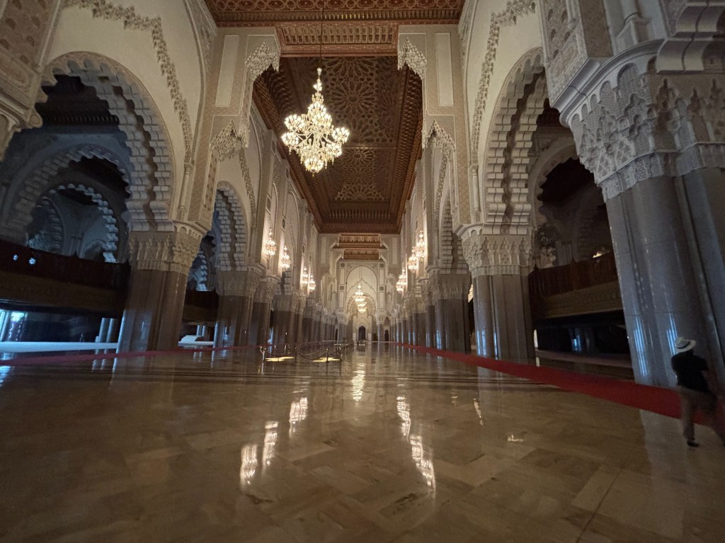 The historical context of the mosque began with the death of King Mohammed V in 1961. King Hassan II had requested that the best of the country’s artisans come forward and submit plans for a mausoleum to honor the departed king. Work commenced in 1986 and was conducted over a seven-year period, with completion in 1993. Construction was scheduled to be completed in 1989 ready for Hassan II’s 60th birthday and during the most intense period of construction, 1,400 men worked during the day and another 1,100 during the night. In addition, 10,000 artists and craftsmen participated in building and beautifying the mosque.