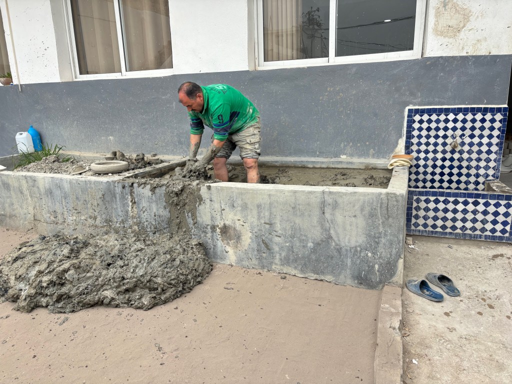 These folks produce beautiful products but one of the main things I came away with, and this would be reinforced throughout the day, was how monotonously dull and repetitive much of the work is and for some, how uncomfortable the working conditions might be. Our first stop was the concrete tubs where the raw clay is cured and then pulled out for use in the making of the pottery and tiles.