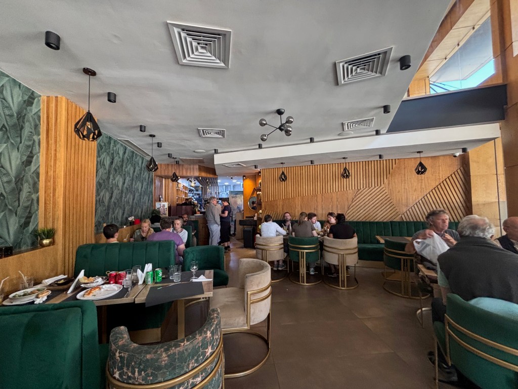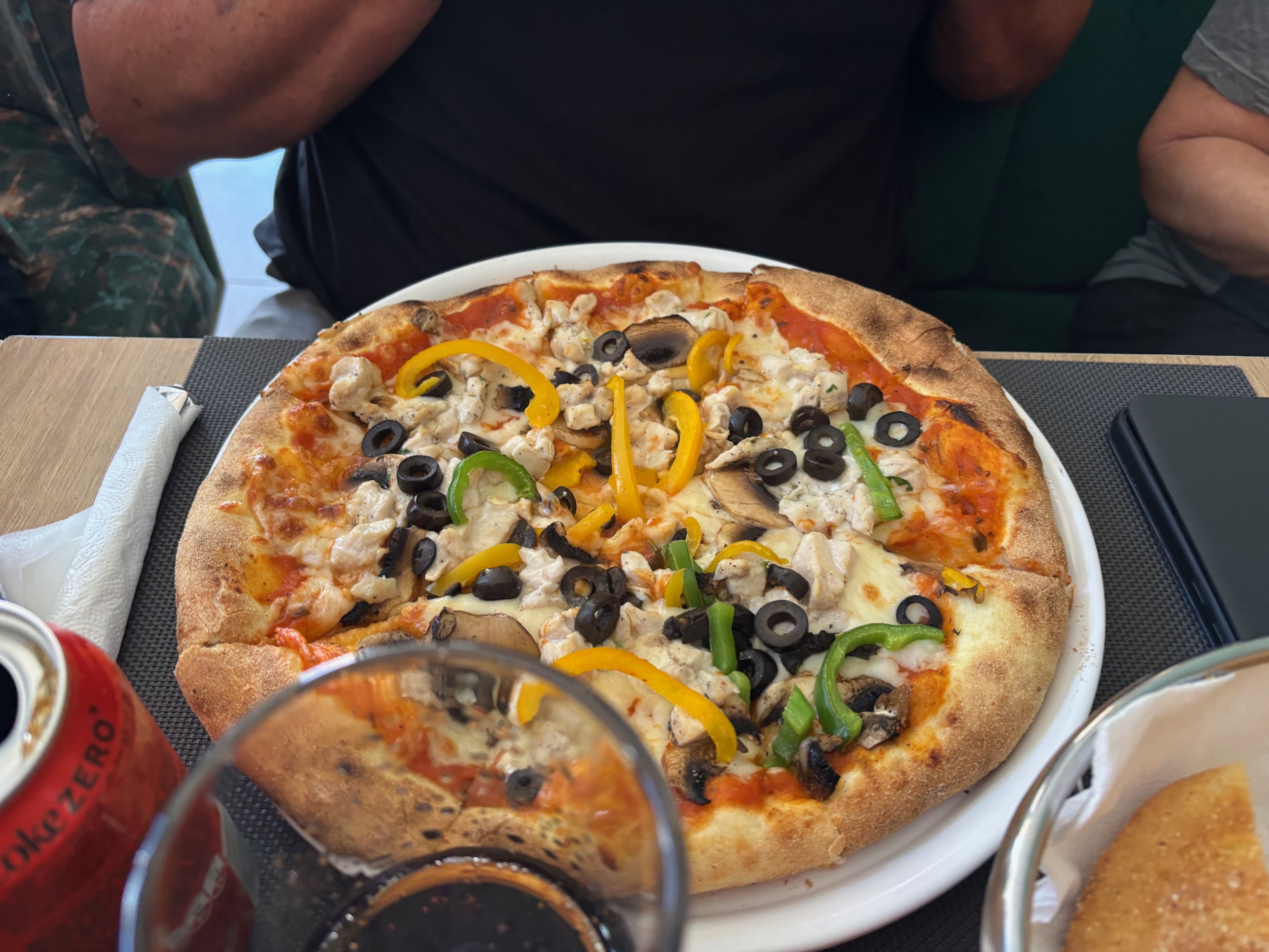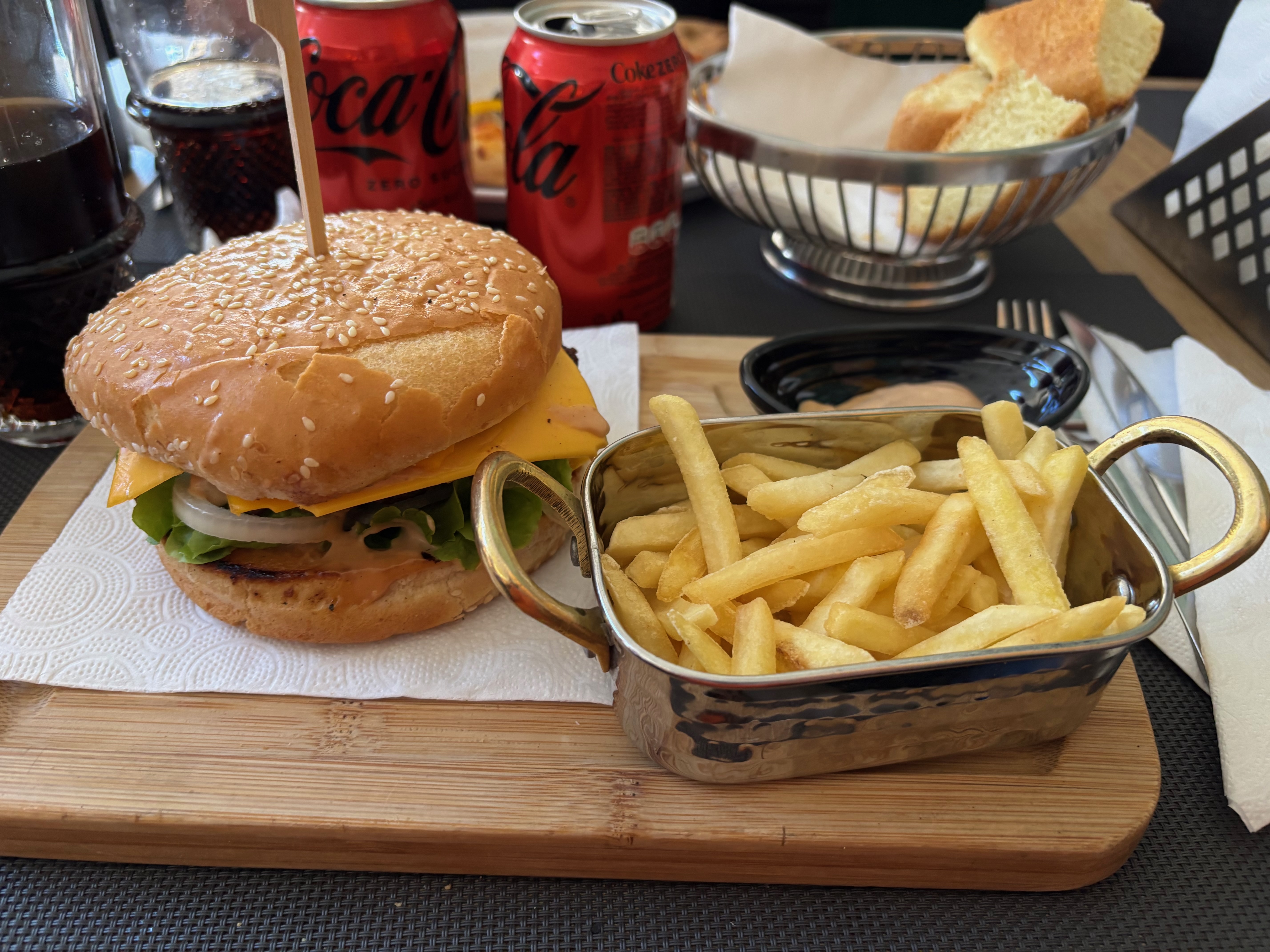 Given the number of tourists that flock to this area, it came as no surprise that the restaurant featured a menu we would find familiar in the states and given our steady diet of Moroccan cuisine to that point, we were all glad to order what they offered. Our table enjoyed a combo pizza, a chicken pizza, a caprese salad, two burgers (one for me) with fries, two smoothies, and some sodas. Our tab came to 568 Dirhams ($57), an amazingly inexpensive meal for that many people. And boy, was that burger good. The only drawback is that they wouldn’t split the check and didn’t take a credit card, so I was elected to total up who owed what and to stand in a long line to pay.