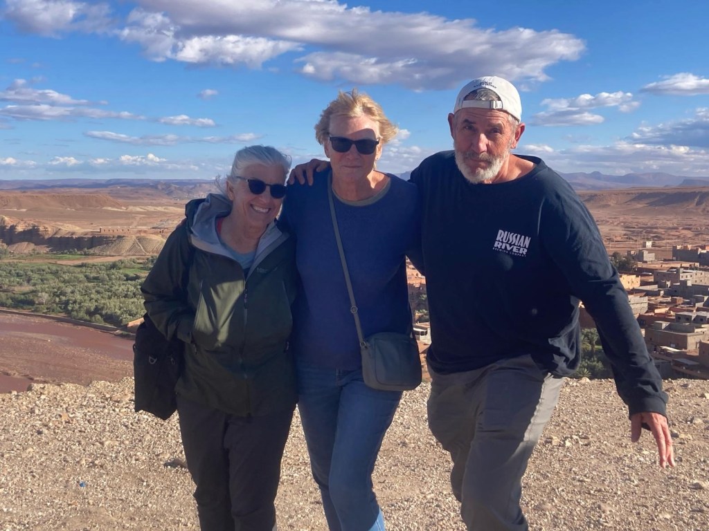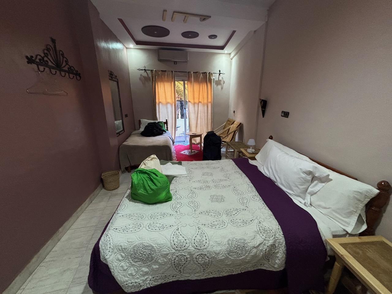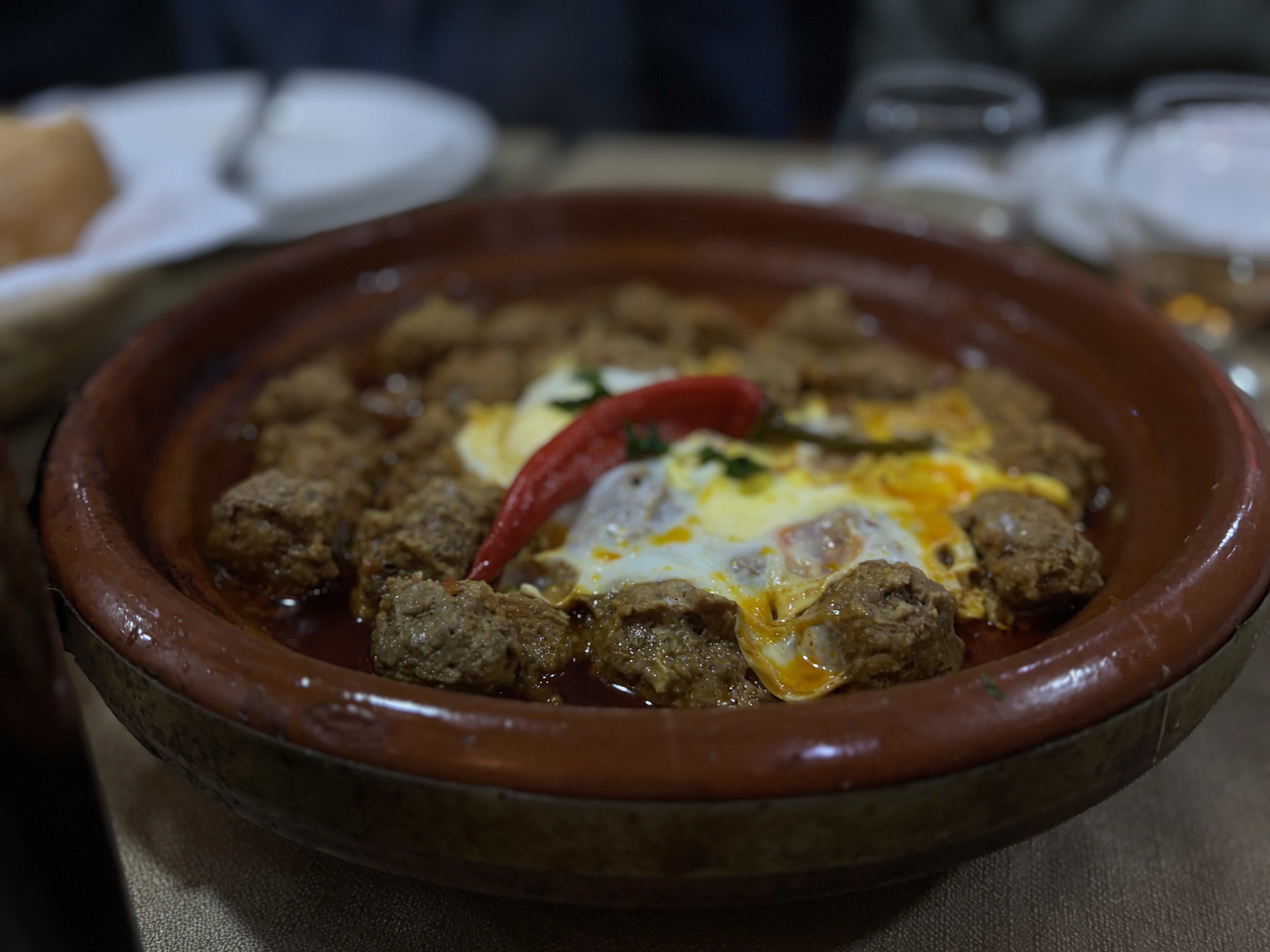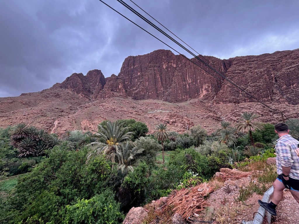Partway there, we pulled over at an overlook to see the valley and town of Souk Lakhmis Dades, a commune in the Tinghir Province where we got a look at the snowcapped Atlas Mountains in the background. Later, we stopped for lunch in Ouarzazate, nicknamed the door of the desert, which is the capital of Ouarzazate Province in the region of Drâa-Tafila at La Terrasse. The town is a primary tourist destination in Morocco during the holidays, as well as a starting point for excursions into and across the Draa Valley and the desert.