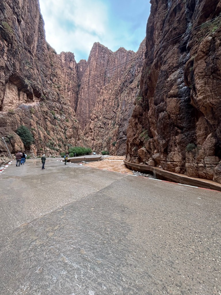 Sufficiently nourished we began our short walk up to and through the famed Todra Gorge, a series of limestone river canyons, or wadi, here in the eastern part of the High Atlas Mountains. Both the Todgha (or Todra) River and the neighboring Dadès River are responsible for carving out these deep cliff-sided canyons, on their final 25 miles through the mountains. The height of the canyon walls can vary, but in some places can be up to 1,312 feet high.