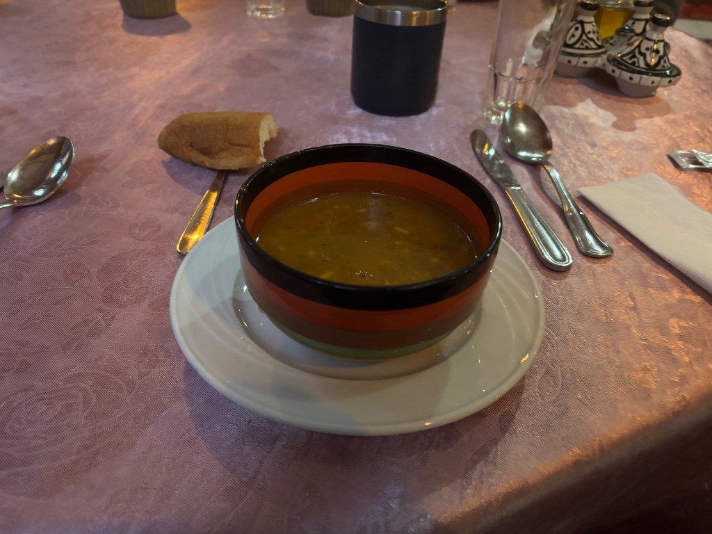 We returned to the hotel for some down time before dinner and although we weren’t that hungry after our filling lunch, Joanna and I gathered with the others in the large restaurant where I had another tasty bowl of Moroccan soup as we all shared the stories that travelers tell as they get to know each other. We would enjoy another buffet breakfast the next morning and then took off in the van for another relatively short day of driving on the way to Alt Benhaddou.