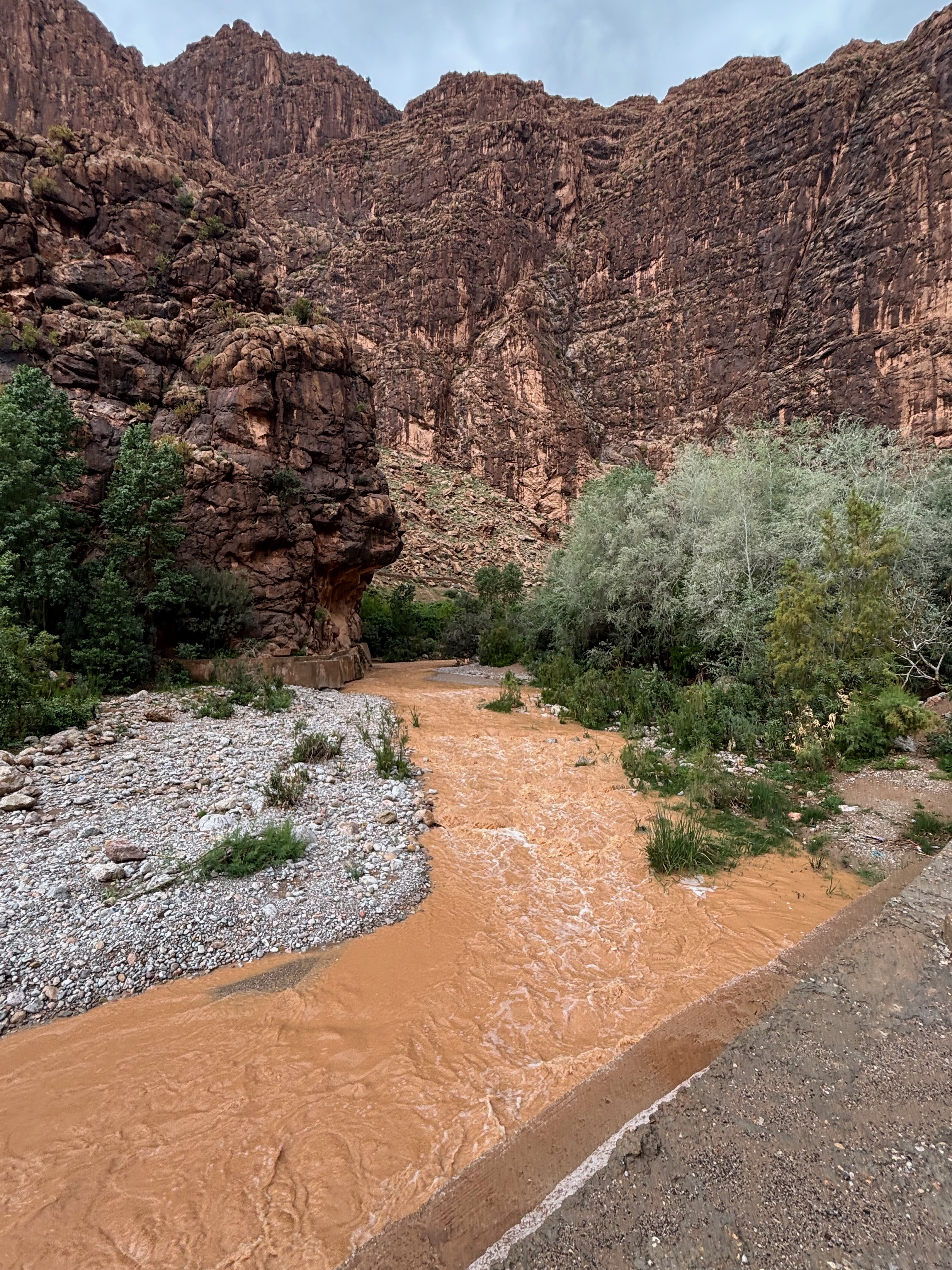 During the dry season, the canyon floor is mostly dry; at most there will be a small stream of water and is easily traversed by travelers. During the rainy season, however, the Todra can expand massively, covering the canyon floor in a strong torrent. Our visit was somewhere in between, with a manageable flow of water running through the canyon. It is an impressive sight, but when one has spent time at deep canyons in the States (Grand Canyon, Black Canyon of the Gunnison, or the Royal Gorge), it could be a bit anticlimactic. It was nice to be out of the van though as we admired the steep cliffs surrounding us.