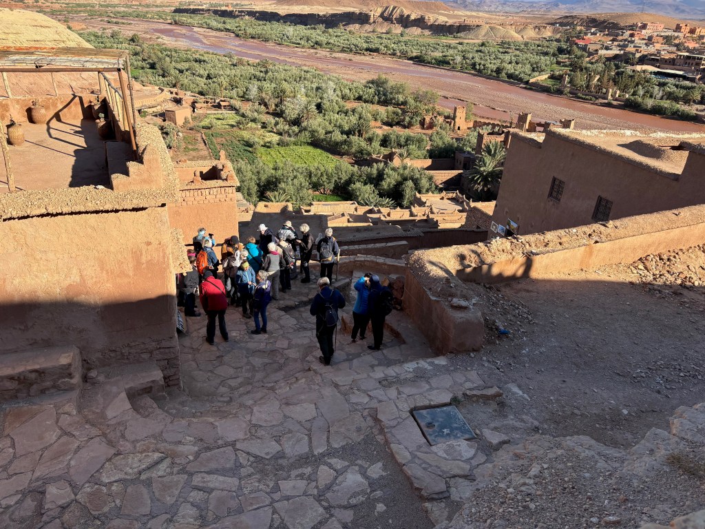 We finished at the shop and crossing the river entered Aït Benhaddou an historic ighrem or ksar (fortified village), which is a UNESCO World Heritage Site at the center of this noted film-making area, with Morocco’s biggest studios inviting many international companies to work here. Films such as Lawrence of Arabia (1962), The Man Who Would Be King (1975), The Living Daylights (1987), The Last Temptation of Christ (198 8), The Mummy (1999), Gladiator (2000), Kingdom of Heaven (2005), Kundun (1997), Legionnaire (1998), The Hills Have Eyes (2006), Salmon Fishing in the Yemen (2011) and The Wages of Fear (2024) were shot here, as was part of the TV series Game of Thrones.