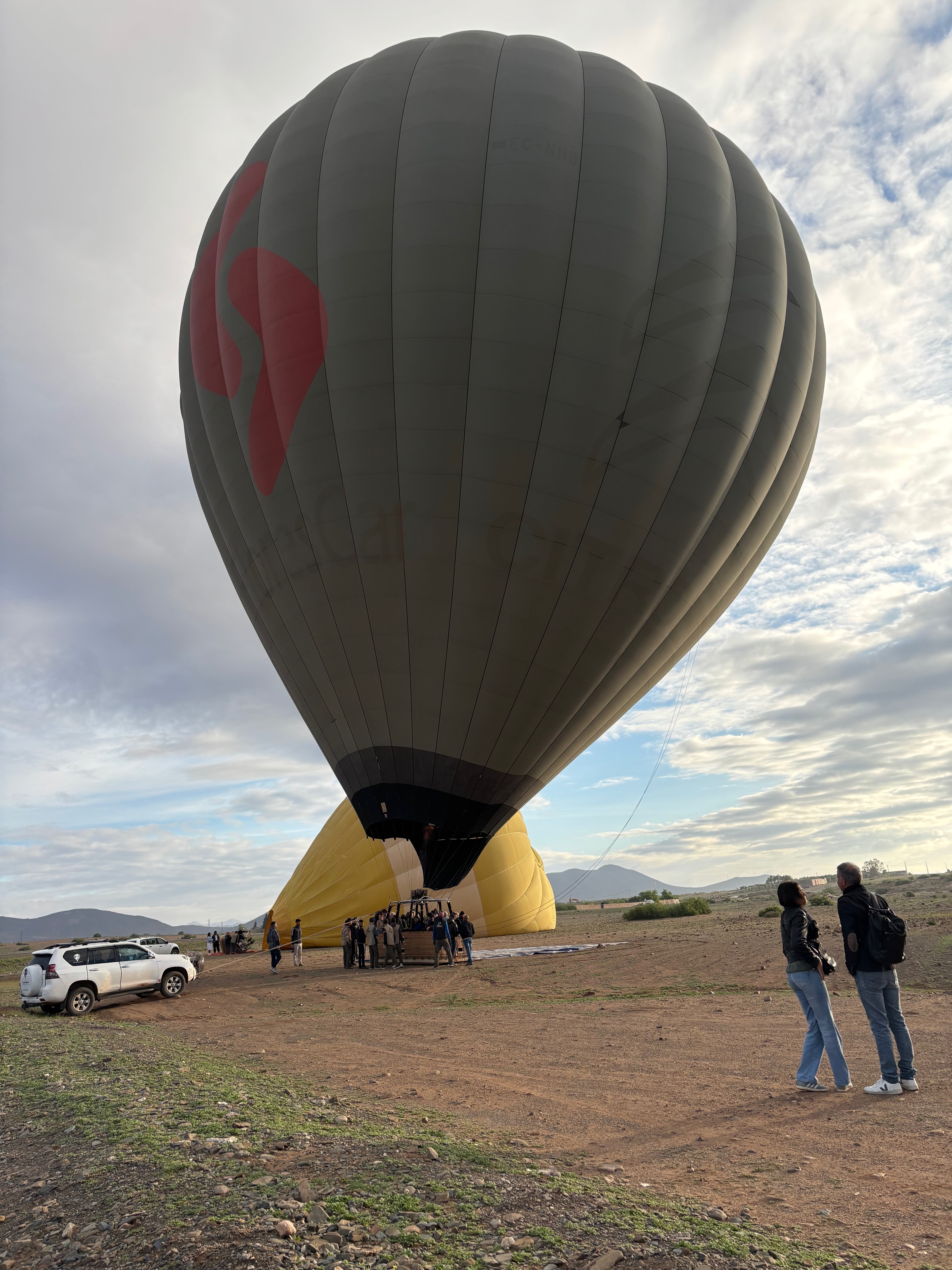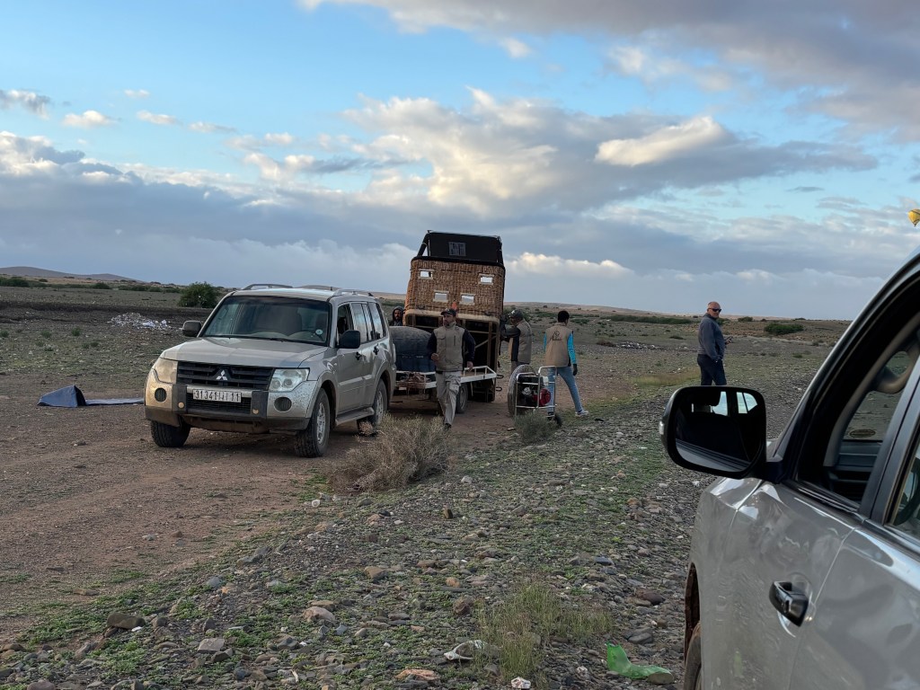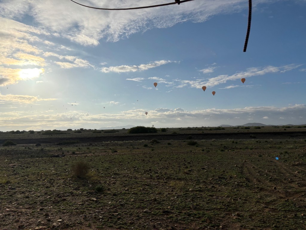 For our hot air balloon ride the next day we needed to be up and out quite early, something like 6:30 so we walked out to the small plaza just outside the pedestrian lanes to the Riad. After a short wait, a driver picked us up and then made a couple more pickups after which we drove some distance out of town to a reception center where we waited, drinking coffee or tea, to be shuttled out to the launch point.