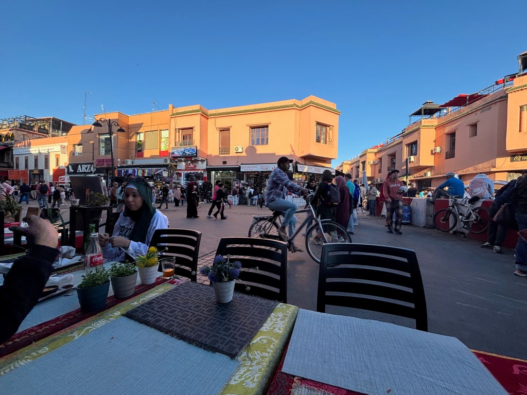 The next morning, we enjoyed breakfast at the Riad, seated in a rooftop lounge we were served very nice omelets, fruit, bread and coffee. Finished, we used the maps on our phone to walk through the medina to Marrakech’s Best Cycling Tour, for our scheduled bike tour of the city through Viator. We’d be joined by a family of four from England, whose oldest son was an aspiring bike racer as we would discover later during a snack stop.