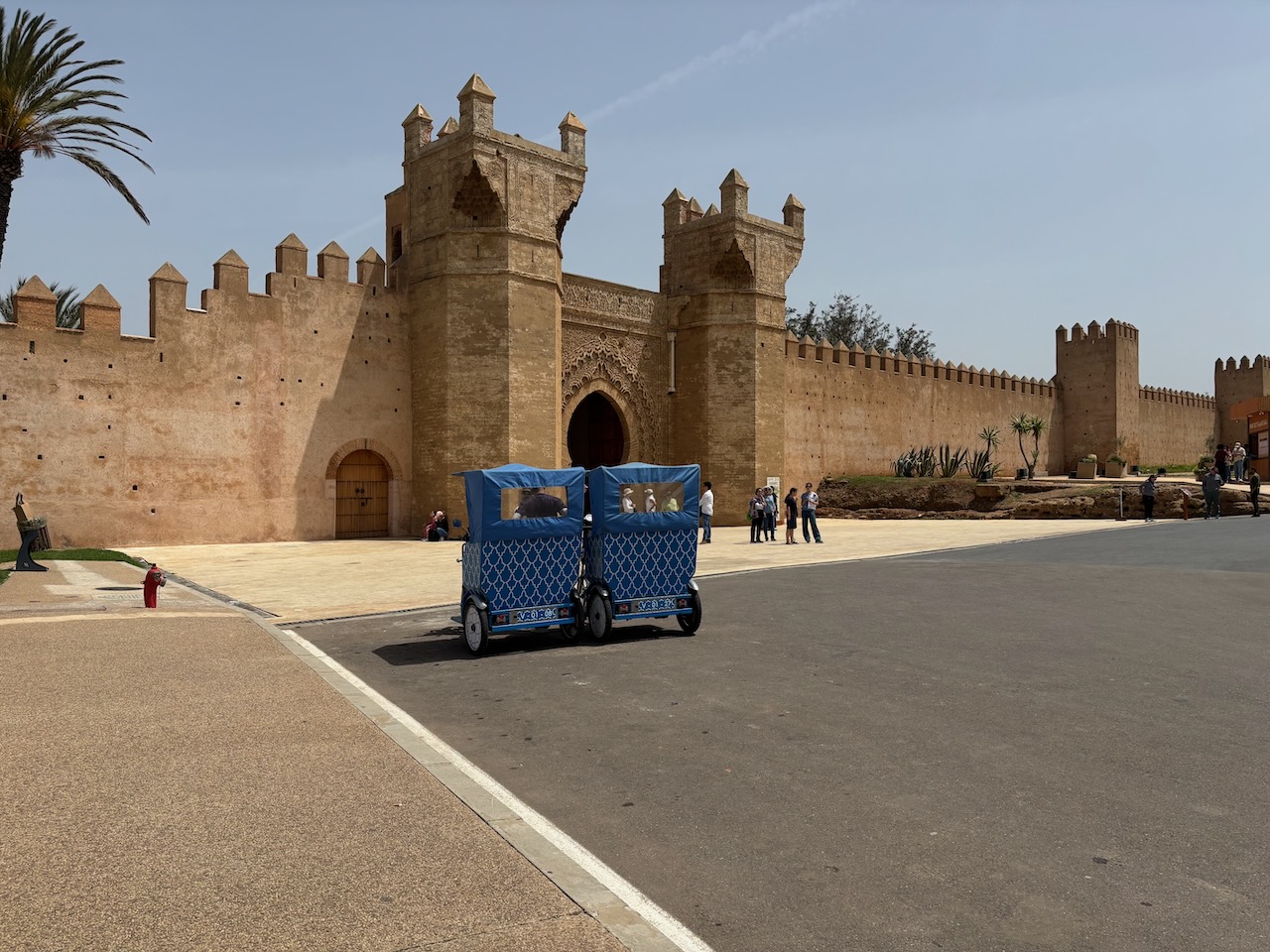 Breakfast the next morning was filling, with local bread and sauces to dip it in and a nice omelet, along with coffee and juice. It would easily power us through our morning activities. Our plan was to start with a visit to Chellah, a medieval fortified Muslim necropolis and ancient archeological site. As it would take about an hour to walk there, we took advantage of the city’s use of Tuk-Tuks, two passengers, pedal assisted electric rickshaws, to transport us to the historical site for 50 Dirhams ($5).