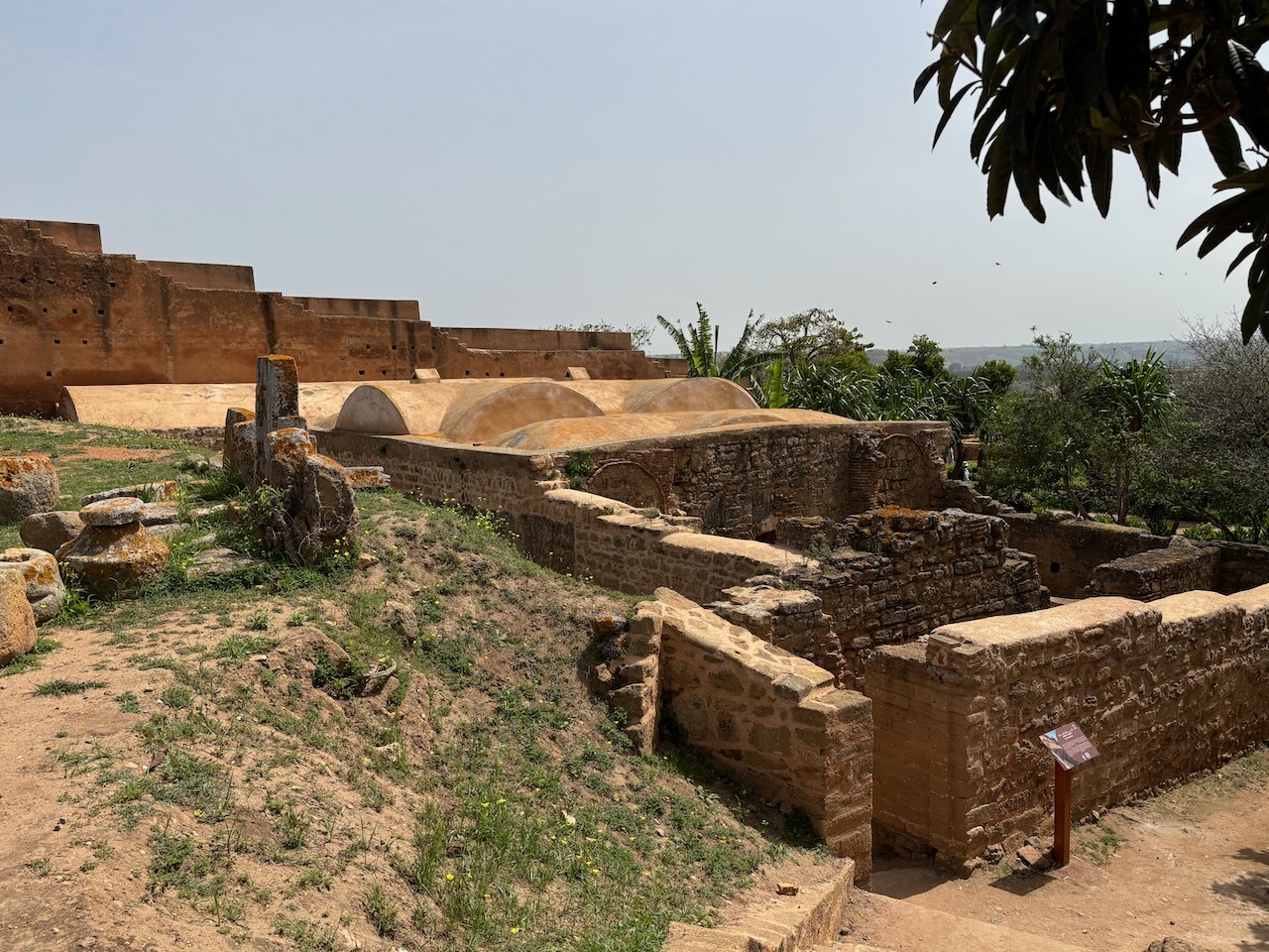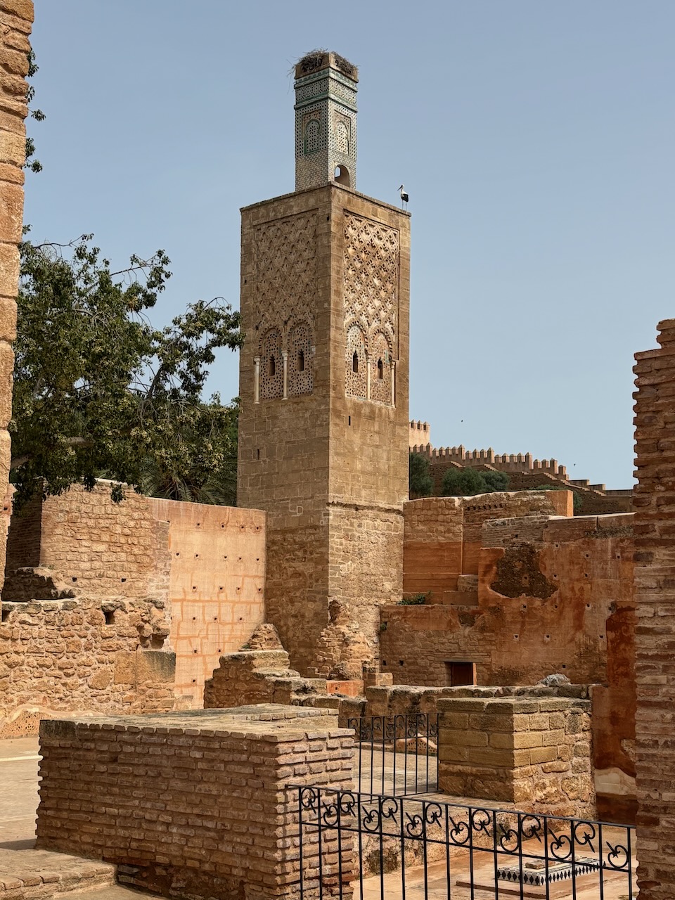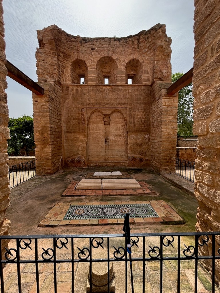 During the Merinid period (beginning around 1284) the site of ancient Sala (the ancient Roman city) was re-appropriated and turned into a royal necropolis for the ruling dynasty. Because of its ruined condition today, the exact chronology of its development is not well known. When you enter the complex the first set of rooms you encounter are of the mosque, which includes a courtyard, a prayer hall, a mihrab, a minaret, and decorative Islamic elements.