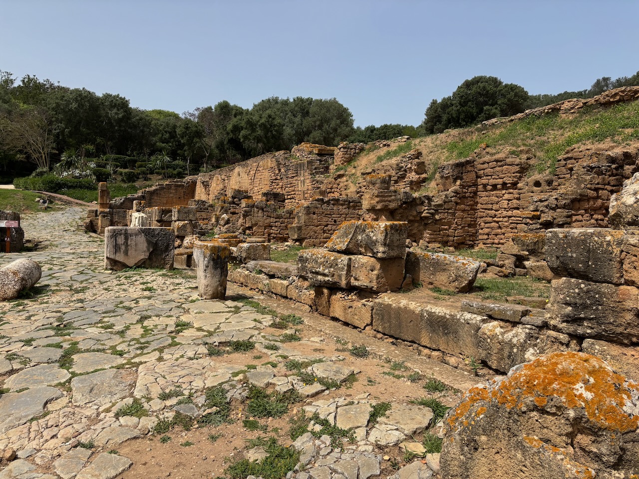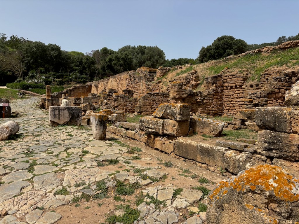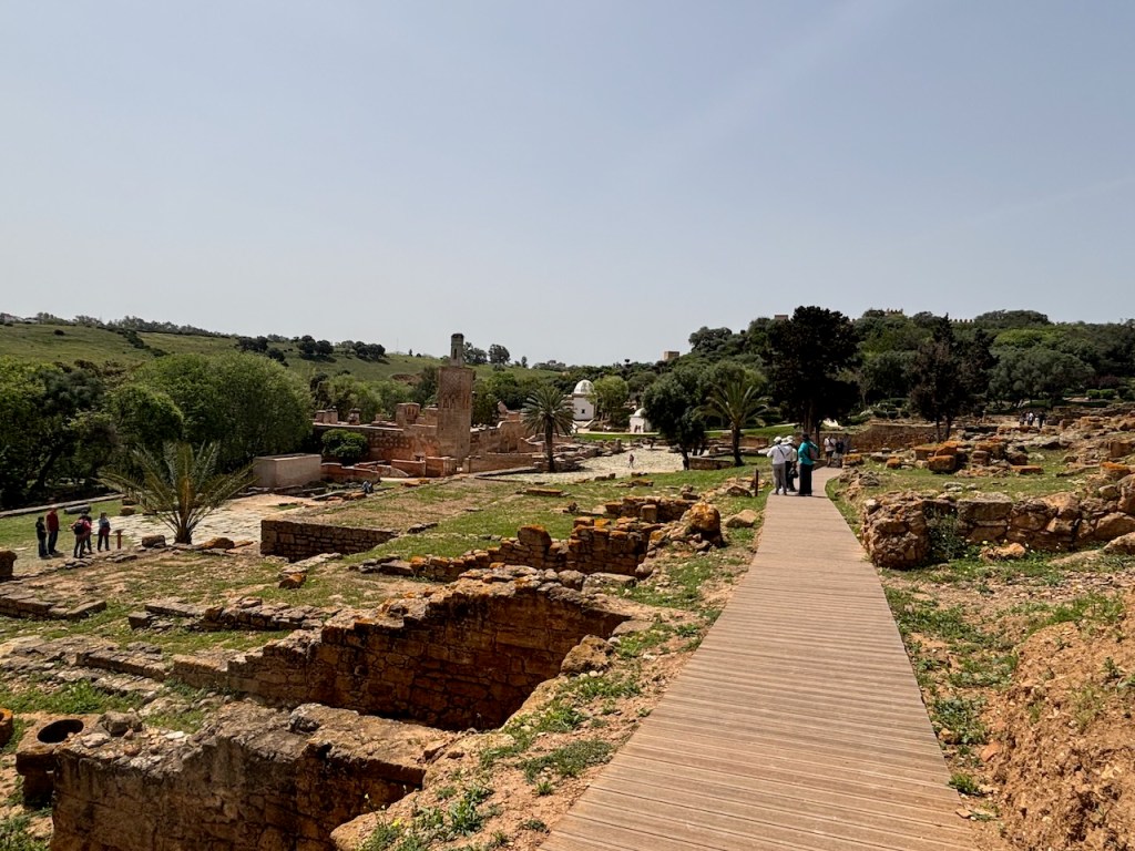 We moved on to the Shems D’ha mausoleum, wife of Sultan Abu El Hassan and mother of Sultan Abu Inan who died in 1349. We left the Complex and began to explore the areas housing the ruins of the Roman city, starting with the judicial Basilica and the Curia, two main institutions in the management the political, legal, and administrative life of the settlement. Across a plaza sits the lower terrace of the Capitoline Hill which included nine shops with vaulted roofs and a gallery overlooking the Decumanus Maximus, the city’s principal east-west street.
