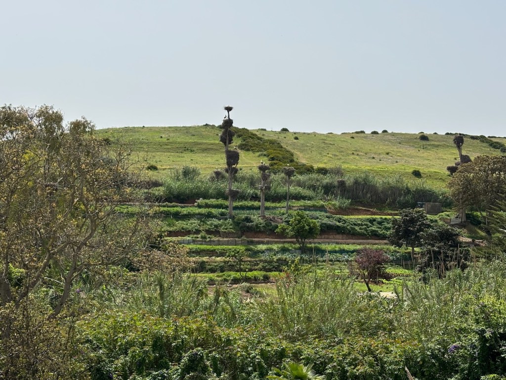 Sited above the extensive garden of Chellah, the baths of the Forum played an essential role in everyday life in Ancient Rome, serving as places for bathing and socializing. Not far from the Roman baths were the remains of a Moorish bath from the Marinid period, one of the oldest historical baths in Morocco, designed according to a traditional plan and ancestral techniques for the heating system, water collection and drainage. Skirting the edge of the garden, I walked out to the south-east tower, one of the twenty-three towers of the Merinid wall, which overlooks the Bouregreg valley.