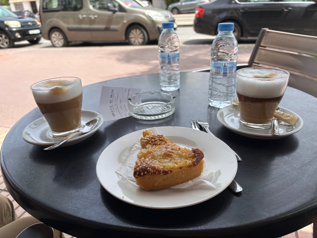 By this time, we were feeling a bit peckish and so walked a few blocks from the esplanade in search of a snack, landing at a corner café. We sat outside and ordered a coffee (nous nous or with milk) apiece from the waiter and I went inside to the bakery side of the shop to fetch us a nice piece of apple cake. It was the perfect way to relax a bit before walking the rest of the afternoon and a treat as our tab came to just 44 Dirham ($5).