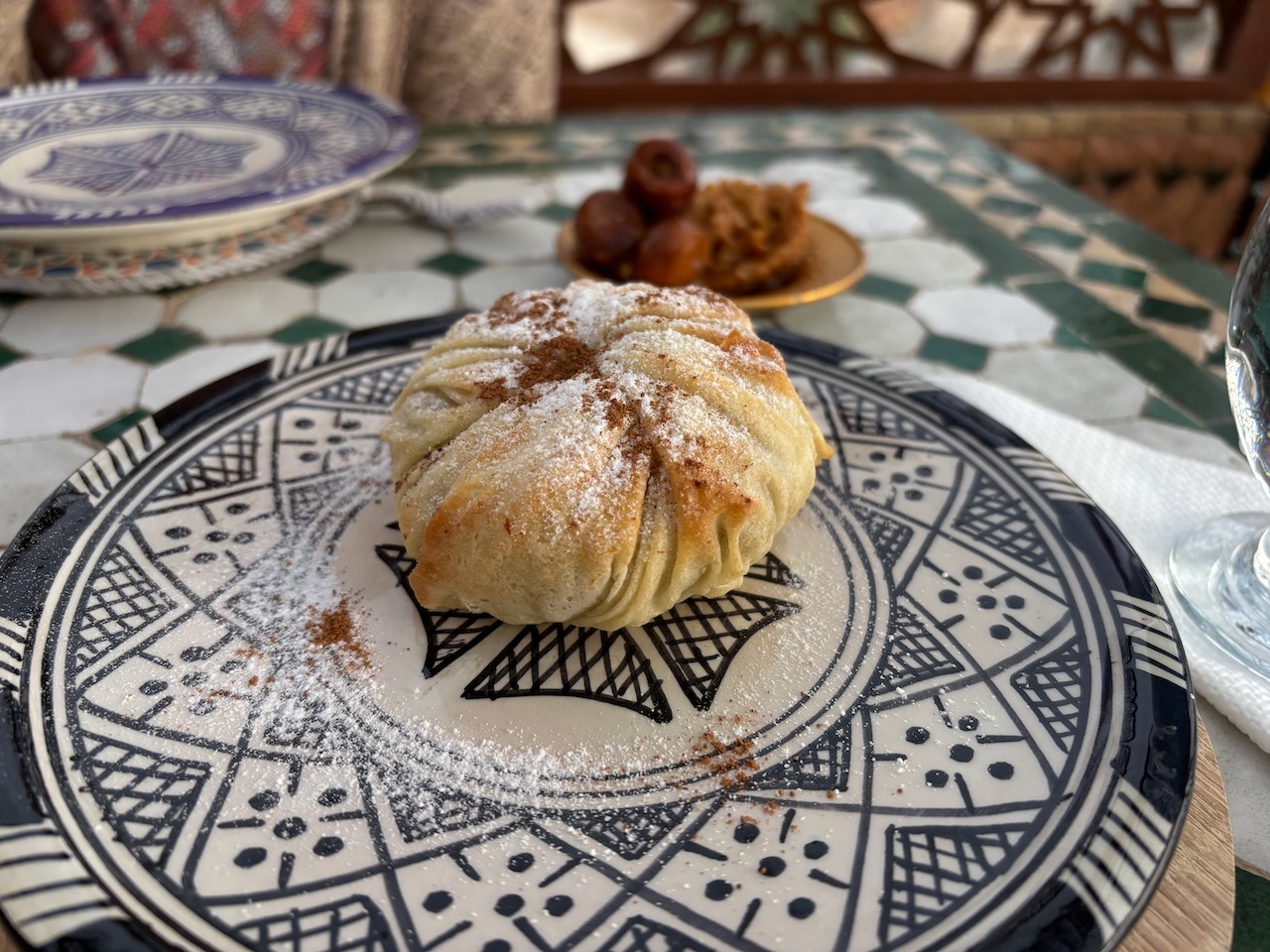 Our quest for the rest of the excursion was to find earrings to gift to our neighbor Marilyn for keeping an eye out at the house while we were gone. We located a pair featuring the Eye of Fatima, the Hamsa hand, a palm-shaped amulet popular in the Middle East and North Africa, believed to offer protection against the evil eye and bring good fortune, that I mentioned in an earlier post. We then wandered a bit, getting lost of course, before enjoying another later afternoon snack before returning to the Riad.