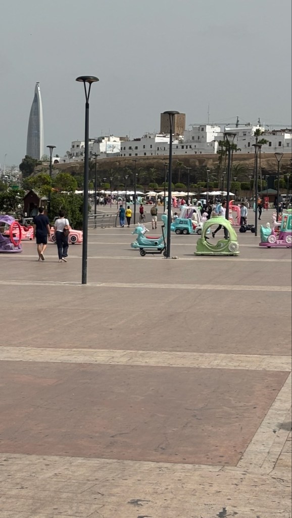 We continued walking down to the harbor to check out Le Dhow, a restaurant we were thinking of patronizing later as it appeared that they served alcohol. As we continued down the boardwalk we marveled at the many pedal cars for rent, all of them outfitted as characters from fairytales and movies. We opted not to rent one but continued, passing the restaurant and climbing a small hill next to the Andalusian Gardens before crossing the street and heading into the Medina.
