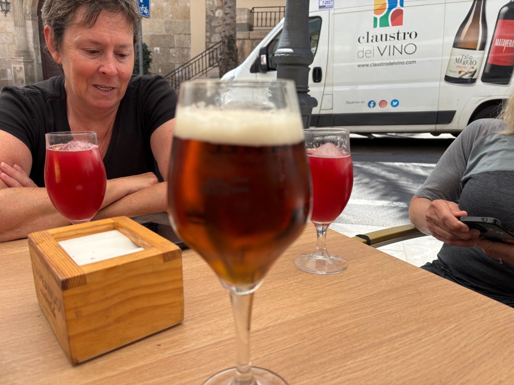 On the way back to the car, we stopped at a café for a drink or two, a beer for Dave and I and Joanna’s first taste of Spain’s Tinto de Verano, similar to sangria and typically made up of 1 part of table red wine and 1 part soda, usually lemon-flavored. We would adopt it for its refreshing nature and Joanna, and later my sister Bev, would later consume respectable quantities of the drink.