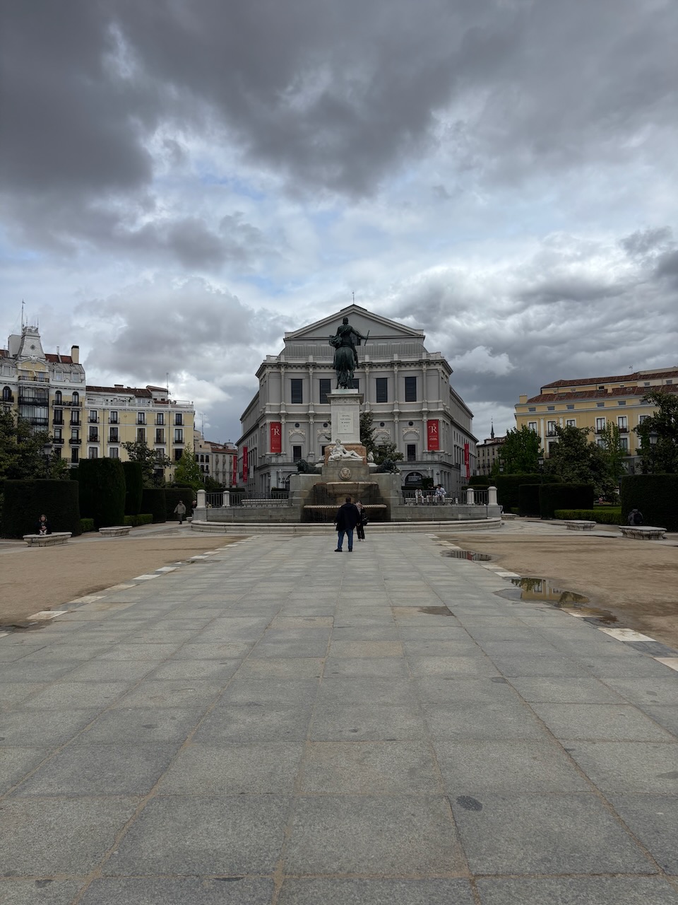 We walked to the edge of the plaza for a commanding vista stretching toward the mountains in the distance of the vast Casa del Campo (a former royal hunting ground, now a city park) and then moved along to Plaza de Oriente. As its name suggests, this square faces east and is typical of today’s Europe, where energetic governments are converting car-congested wastelands into inviting public spaces. Where’s the traffic? Under your feet. A former Madrid mayor who spearheaded the project earned the nickname “The Mole” for all the digging he did.
