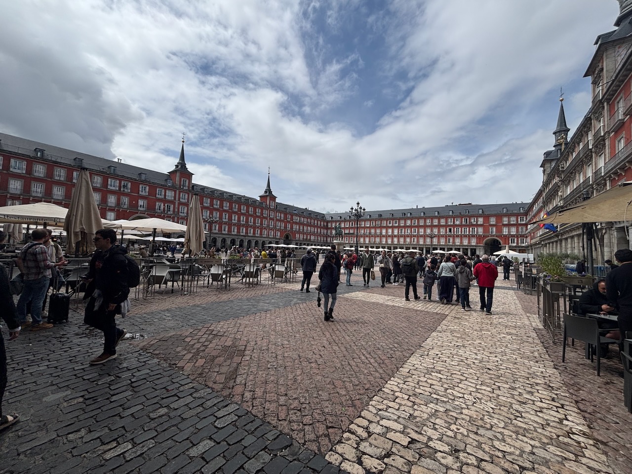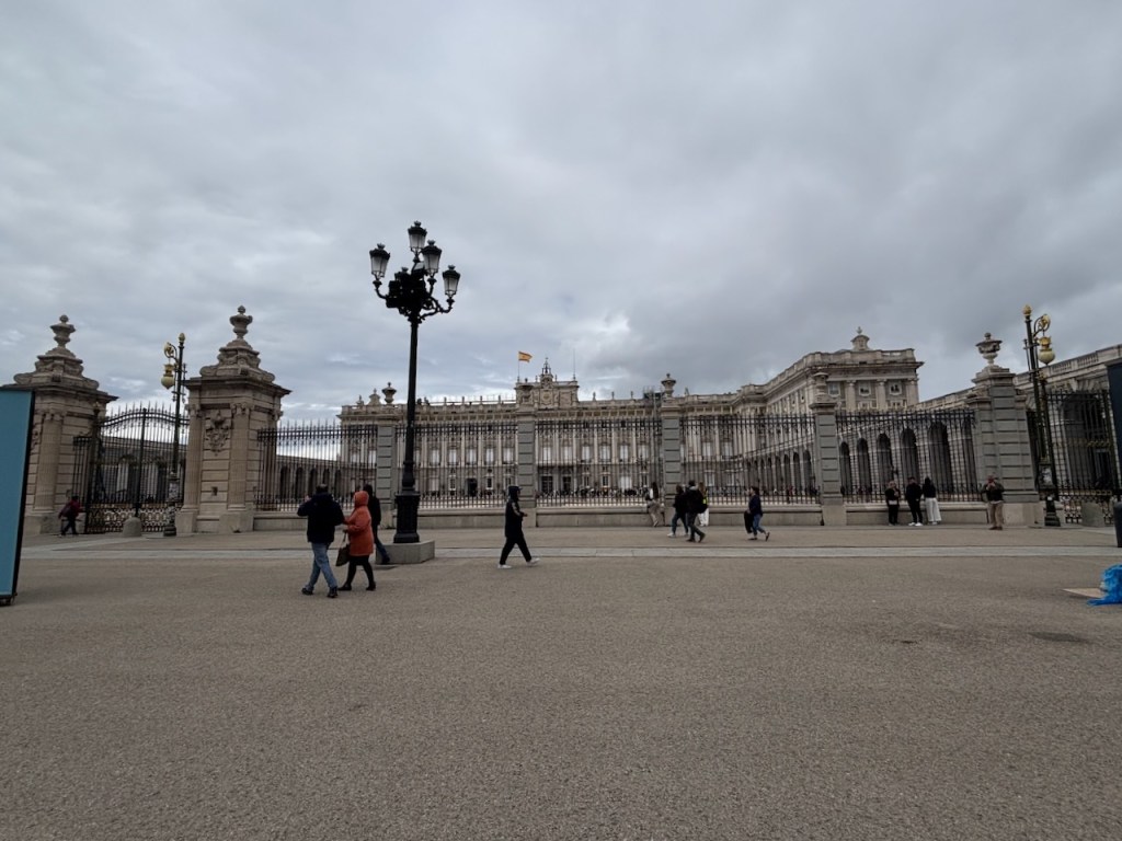 Exiting, we circled the building and found ourselves on the other side of the cathedral in Plaza de la Armería, facing the Royal Palace. We would return here the next day for a guided tour, but paused for a moment or two to take it in. Since the ninth century, this spot has been Madrid’s center of power: from Moorish castle to Christian fortress to Renaissance palace to the current structure, built in the 18th century. With its expansive courtyard surrounded by imposing Baroque architecture, it represents the wealth of Spain before its decline. Its nearly 1.5 million square feet make it Europe’s largest palace.