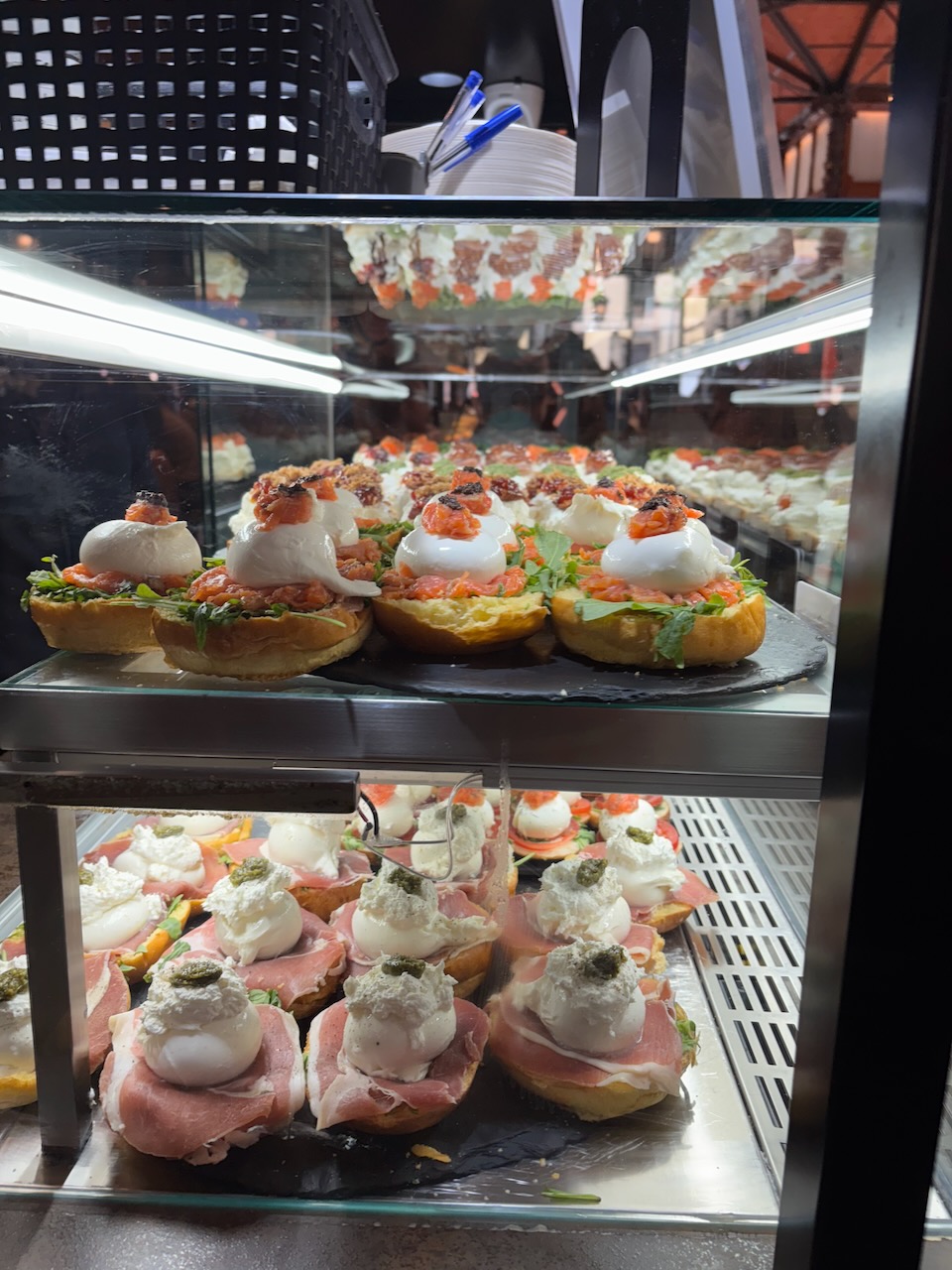 The city’s Tourist Information Office (TI) is located here and in 2014 Joanna and I met up with a guided tour here. One of our first stops was at Mercado de San Miguel, a modernized version of the markets we find in most cities, but this one is more of an upscale food court. When we visited there that year, we thought we’d enjoy a cost-effective meal sampling various items, but it ended up running us almost 40 Euros, a lot for us at the time. Looking back now, with today’s travel budget in mind, it wasn’t so bad after all.