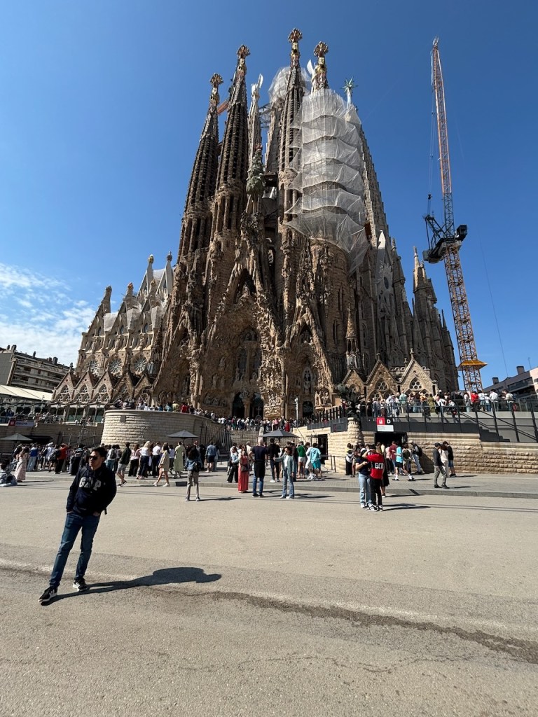 With just two full days in town, and having visited here in 2014 and 2017, we wanted to make sure that we hit the places that were most important to Bev. For our first day this meant starting with Sagrada Familia, the largest unfinished Catholic church in the world. Designed by the Catalan architect Antoni Gaudí, construction under architect Francisco de Paula del Villar began in early 1882. In 1883, with Villar’s resignation, Gaudí took over as chief architect, transforming the project with his architectural and engineering style, combining Gothic and curvilinear Art Nouveau forms. Gaudí devoted the remainder of his life to the project, and he is buried in the church’s crypt. At the time of his death in 1926, less than a quarter of the project was complete.