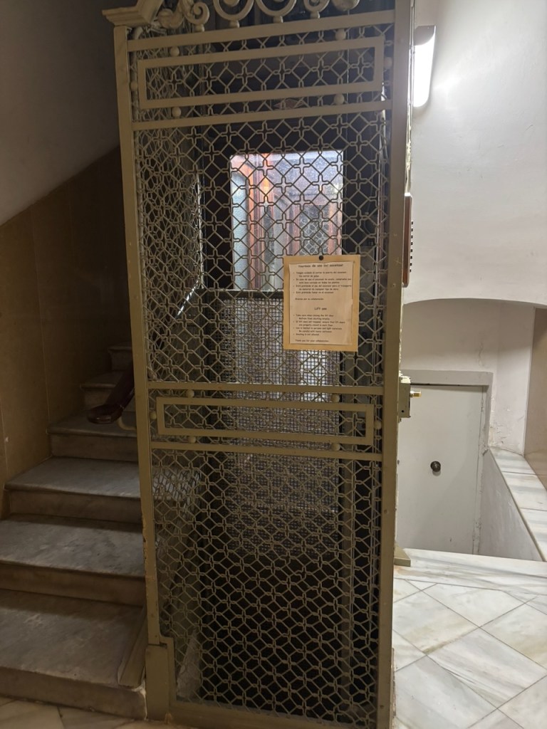 Upon arrival our host took us to our unit and then left while we got settled in and waited for Francois to arrive. A little later I looked out the window to the street below and saw him standing at the door and so called down that I would join him shortly. Doing so, this is when fun with the elevator started as it took us several attempts to remember what floor we were on and the steps needed to make sure both doors (front and back) were closed so the contraption would operate. In a tight pinch, it could take three of us, or one of us and luggage. We finally got it figured out and would run it smoothly for the rest of our stay, but that being said, Joanna refused, perhaps wisely, not to get into the thing.