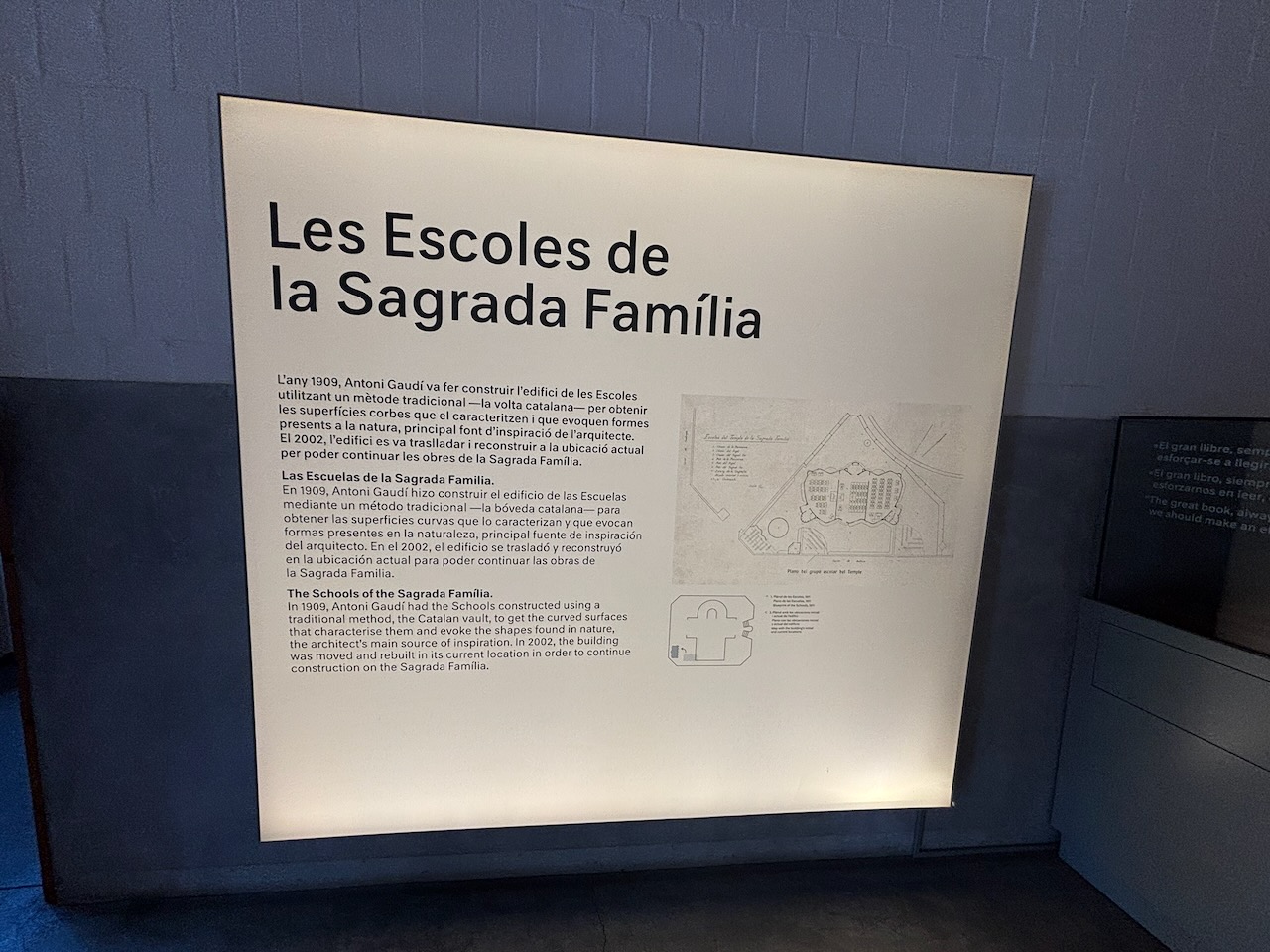When our tour finished, I went outside, pausing to admire the bronze doors created by Josep M. Subirachs, a Barcelona born sculptor and painter of the late 20th century who is best known for his work on the Passion Facade where the doors are located. While waiting for the others to finish, I explored a schoolroom on the perimeter of the Basilica, designed by Gaudi as a temporary school for the sons and daughters of the workers of the church and the local children.