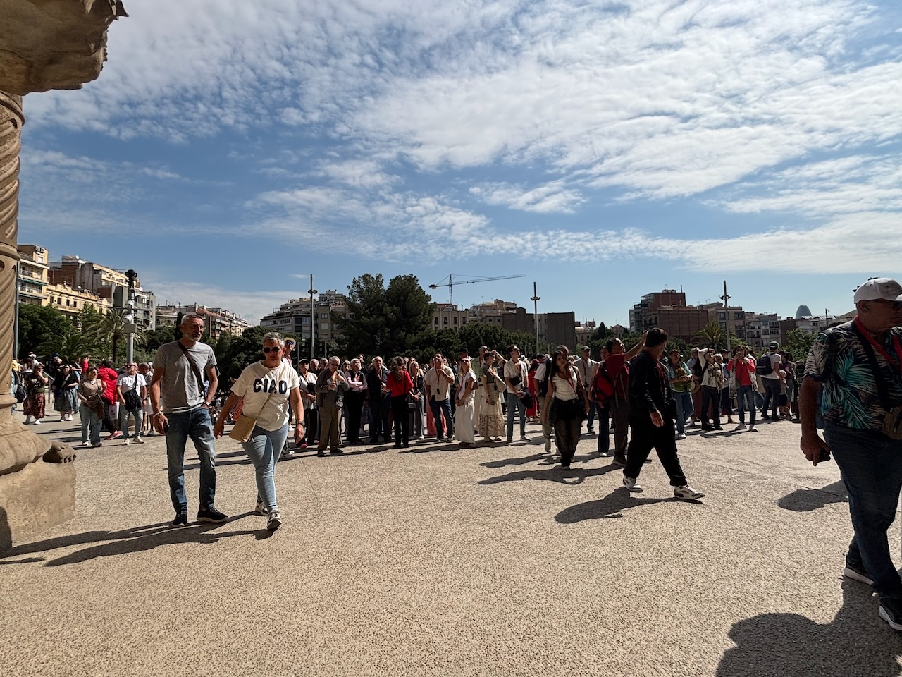Once we all reconvened, we stood in line for our ascent up one of the Basilica’s towers choosing either the one on the Nativity façade, with views of the eastern side of Barcelona, or the one on the Passion façade, with views of the city center. I went up the Passion Façade which provided a sweeping view of Barcelona in the direction of the Montjuic district, a broad shallow hill that was declared an area of Cultural Asset of National Interest in 2007. It has been the site of various fortifications, including the Castle of Montjuïc dating back to the 17th century as well as the site for the 1929 International Exposition, and was also the location for several venues during the 1992 Summer Olympics, with the Olympic stadium as the centerpiece. Joanna and I spent a good part of a day exploring it in 2014.