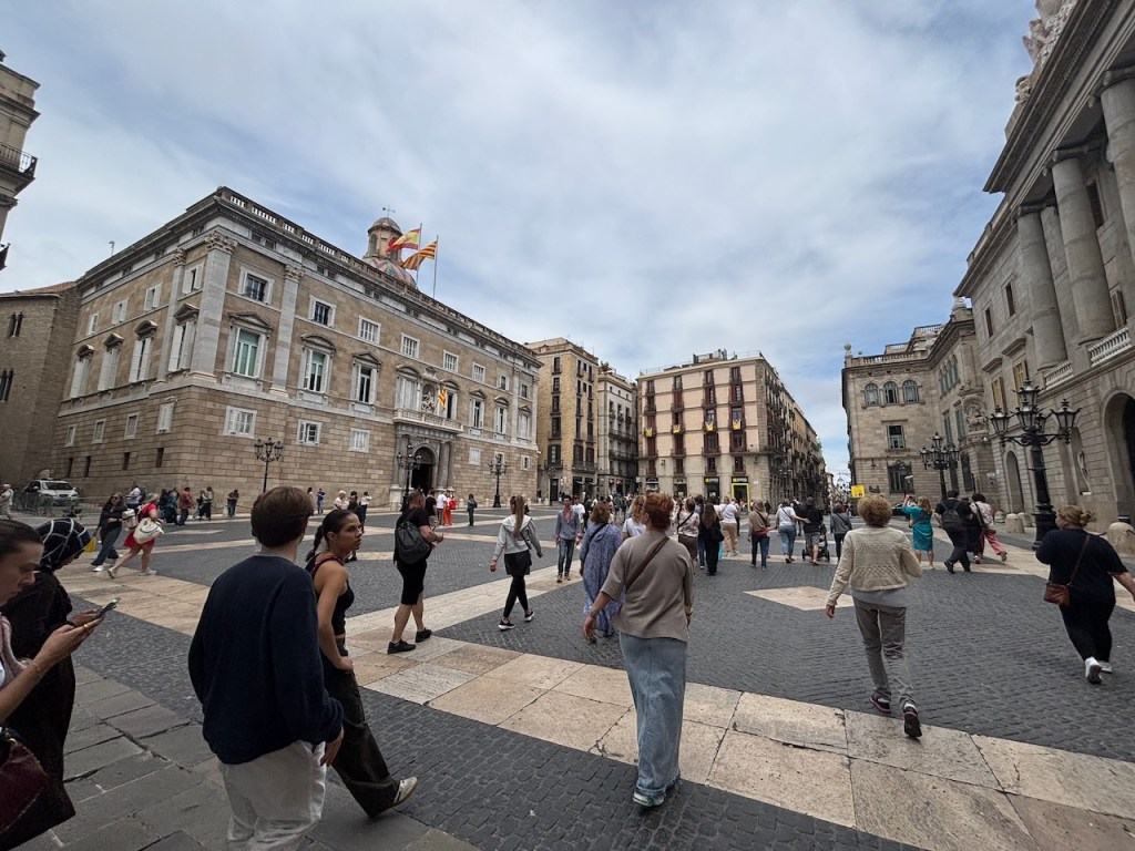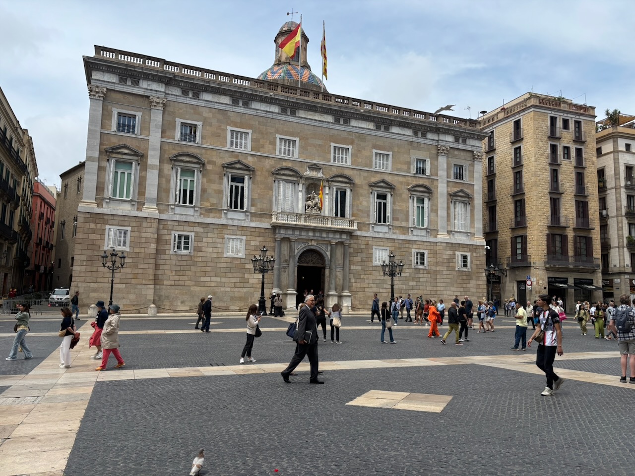Placa de Sant Jaume is set at the intersection of ancient Barcino’s main thoroughfares, and this square was once a Roman forum and is home to the he Palace of the Generalitat of Cataloni, an historic palace that for more than six centuries has housed the offices of the Presidency of the Generalitat de Catalunya. It is one of the few buildings of medieval origin in Europe that still functions as a seat of government and is home to the institution that originally built it. In that sense, it’s been the seat of city government for 2,000 years. It always flies the Catalan flag next to the obligatory Spanish one. Above the building’s doorway is Catalunya’s patron saint—St. George (Jordi), slaying the dragon.