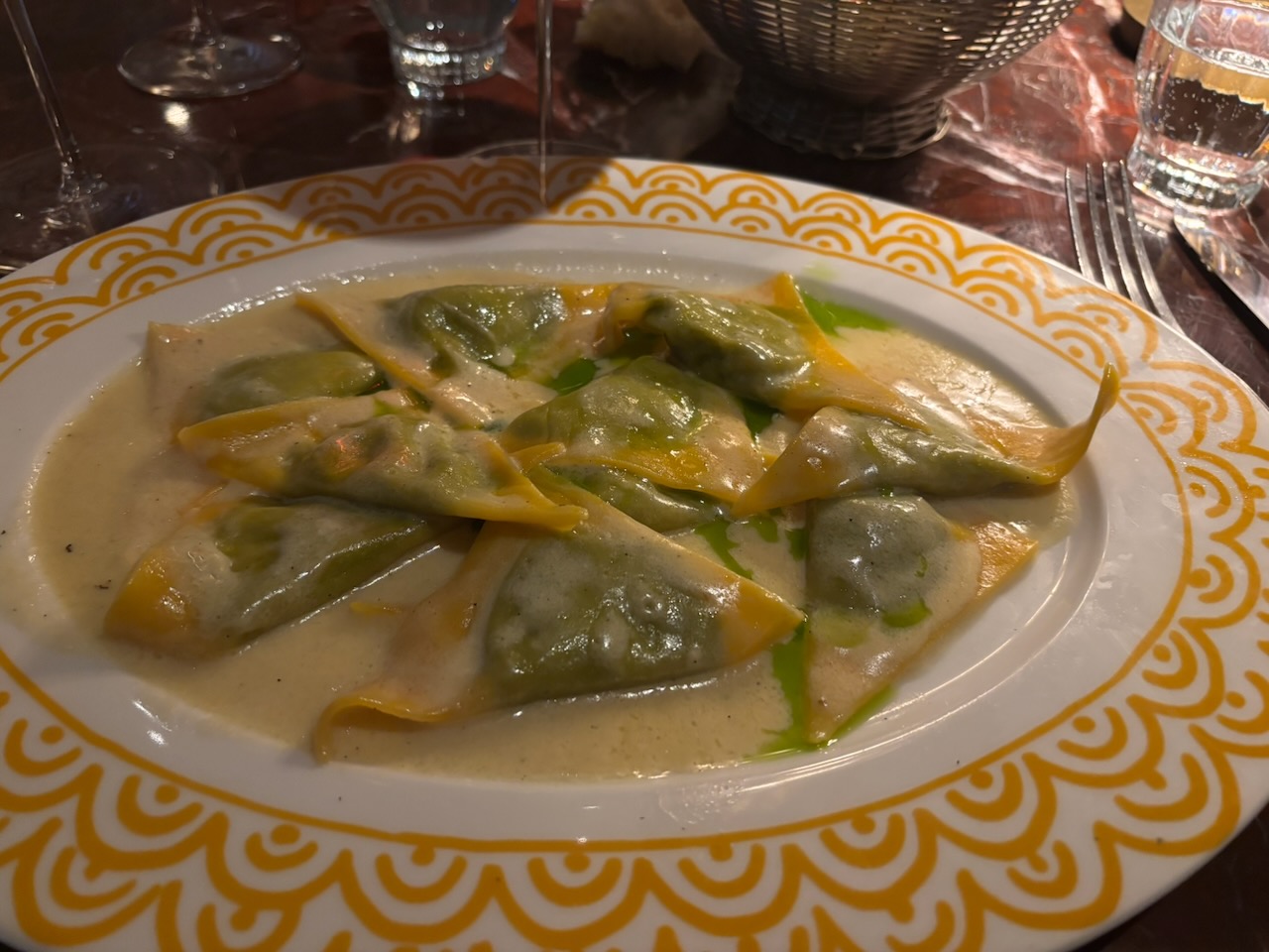 I would start with a delicious dish of Fazzoletti Ricotta e Spinaci (Home-made ravioli filled with lemony ricotta and spinach, served with burro e salvia and Parmigiano Reggiano foam) reminiscent of a similar dish we had in Siena in 2014 that first night when Lyndsey joined us. For my main it would be the Tagliata di Pollo (Boneless ecological chicken marinated with spices, grilled, and served with herb butter cream). It was all nicely done and a perfect way to wrap up our time in Barcelona and with Bev, who would fly home in the morning. And the best part was the total bill came in at 210 Euros ($241), roughly $60 apiece for multiple courses and drinks all around.