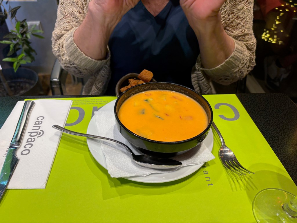 We returned to the hotel with a free afternoon in front of us and so Joanna went for a walk along the beach and to do some last-minute shopping while I had a massage in the room. The hotel arranged it for me and put the cost on our bill, just 60 Euros for a full hour. The therapist was quite entertaining, a youngish guy who had some connection to the Spanish Olympic team, either as a competitor or as a therapist. All I know is that it was one of the better treatments I’ve experienced.