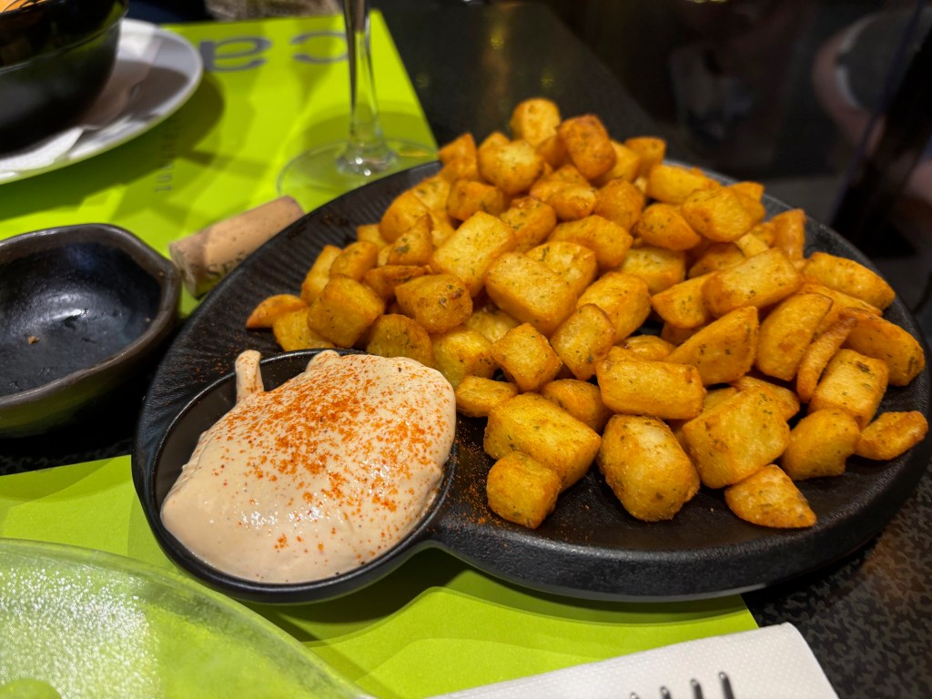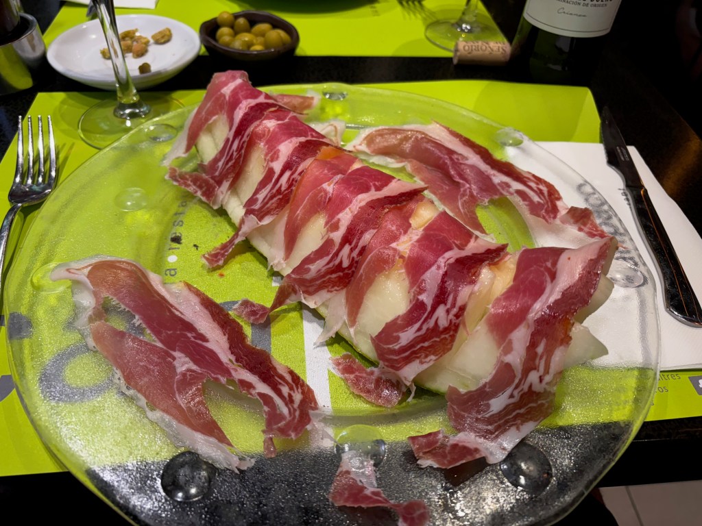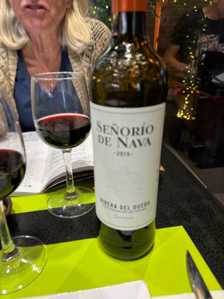After Joanna returned and a glass of wine or two, we headed out to find a place for dinner that appealed to our sense that it would be one of our last meals of the trip. After walking around a bit, we settled on Restaurant Canpaco, which was crowded and had a decent selection of menu items. We decided to just work our way through the appetizers and to fuel our way, ordered a bottle of Senorio Nava Duero, at 18 Euros a price we would never see in the States.