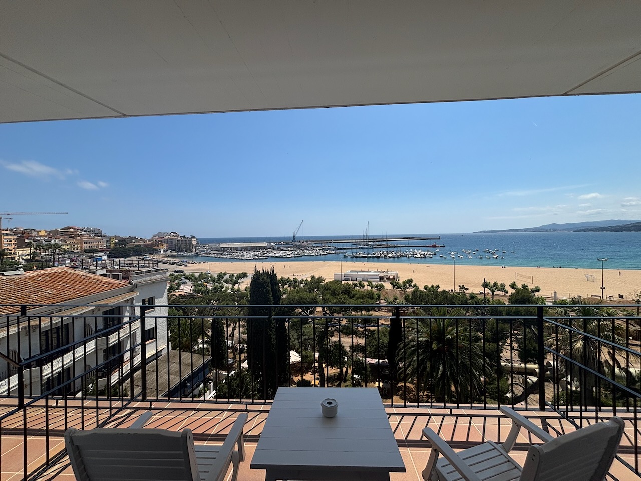 The next hour or so passed quickly and we entered our final stop of the bike tour, the town of Palamos on the coast, having that day accomplished 21 miles with 1,000 feet of climbing. We did turn on the GPS for this final leg and it led us to our home for the next two nights, the Hotel Trias where tonight’s cost would be covered as part of the tour and where we had booked an additional night for 115 Euros ($126). For that low sum, somewhat explained that it was a shoulder season, we got a spacious third floor room with a view of the harbor, a large bathroom with separate toilet and walk in shower.