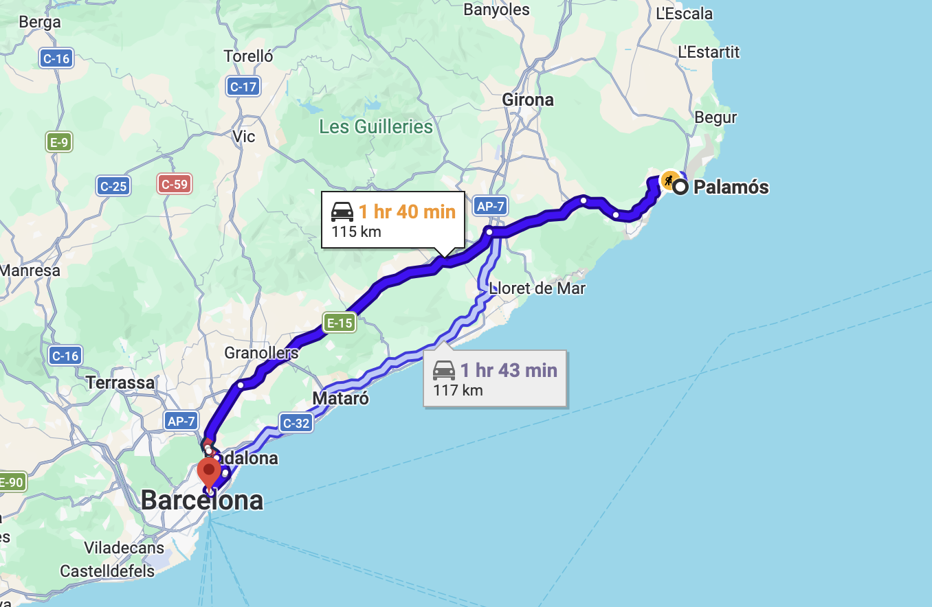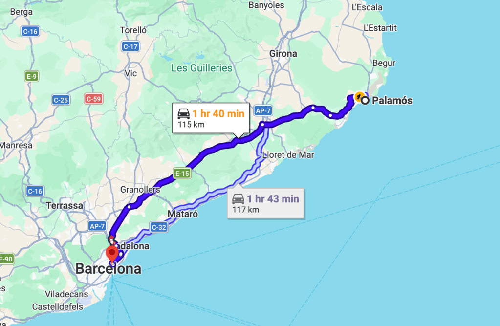 We filled up at breakfast the next morning and knowing we might not eat again until later that day, made some sandwiches to bring with us, thinking we would eat them during the two-hour bus ride to Barcelona. We checked out of the hotel and walked the half mile or so to the bus station, where we soon enough boarded, found our seats and began our journey, the last of the trip until we got on the plane for home the next day.